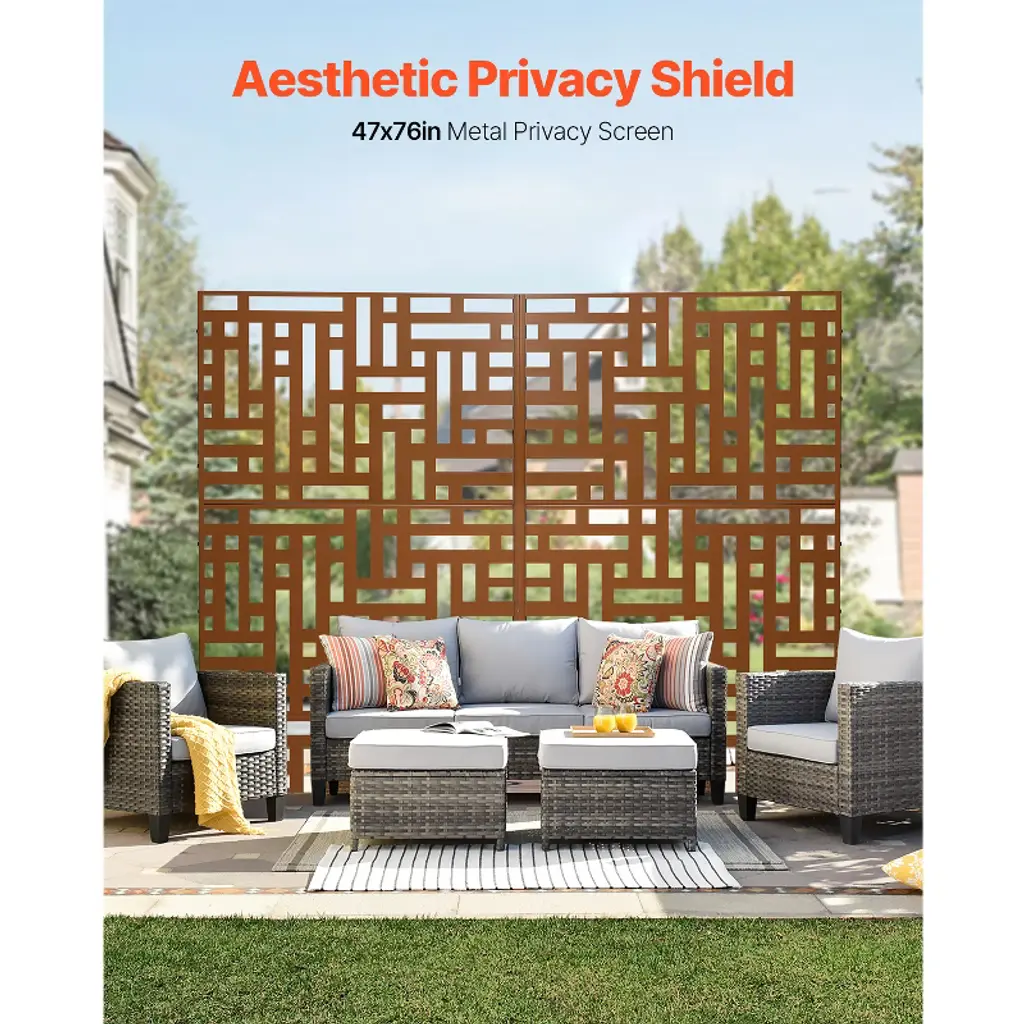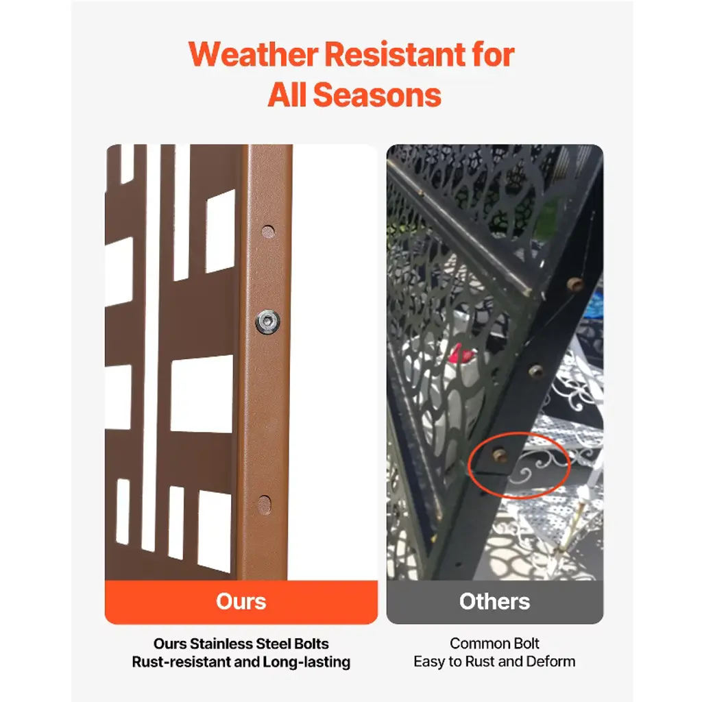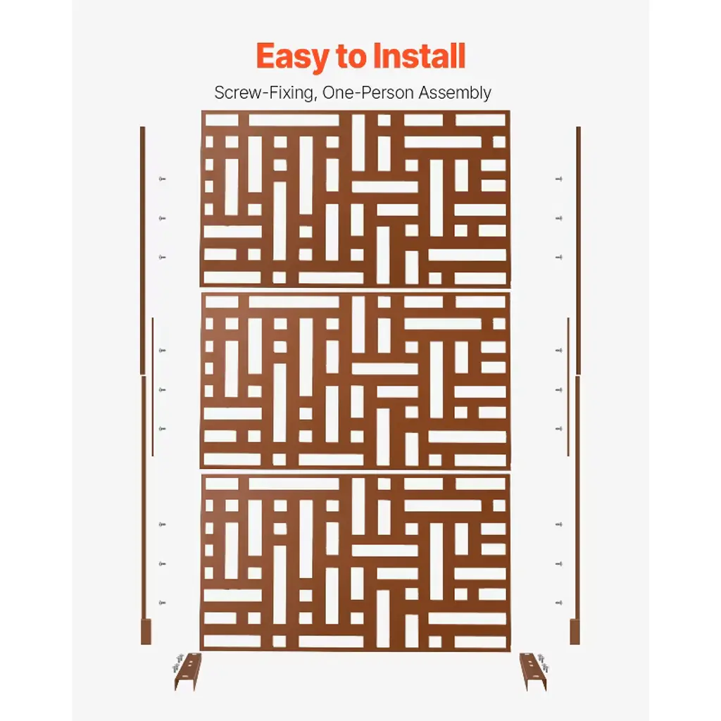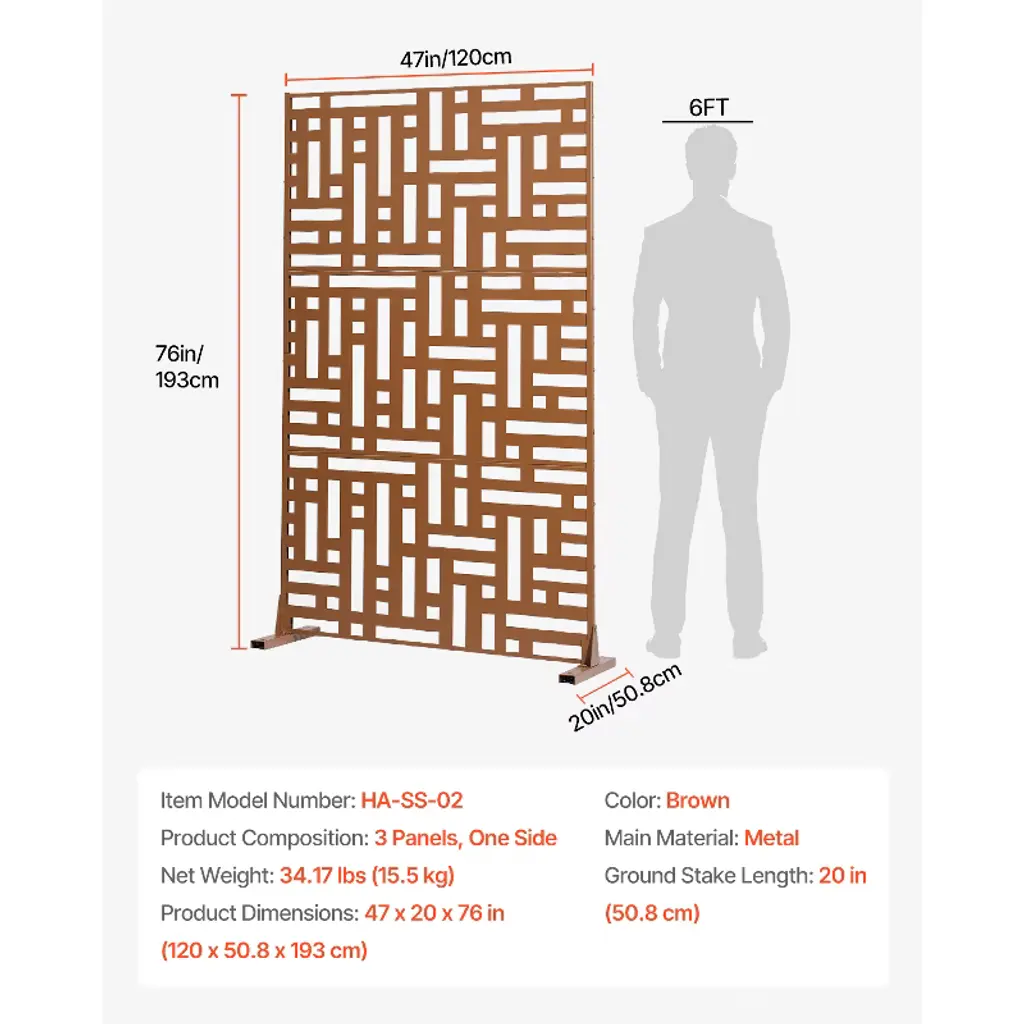 Vevor Metal Privacy Screen, 47" W X 76" H, Outdoor Privacy Screens 3-panel, Freestanding Outdoor Divider With Stand, Brown