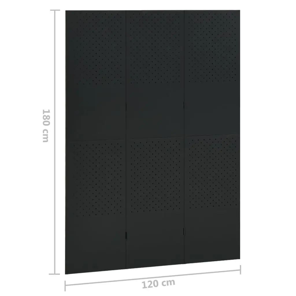 Vidaxl 3-Panel Room Divider Black 47.2"x70.9" Steel
