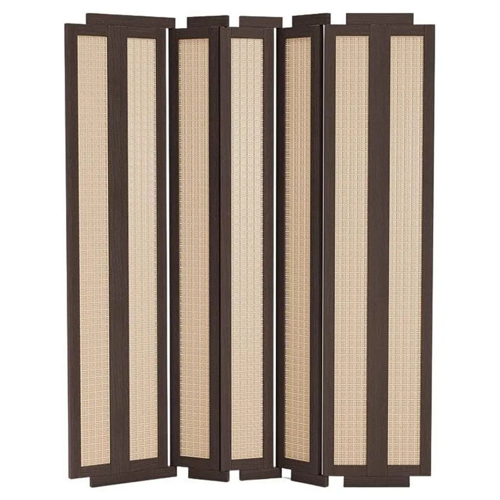 This room divider protects your privacy and also can be used for decorating the bedroom, dining room, living room, etc.This freestanding and elegant 5-panel room divider can be used for decoration or as a partition. It is perfect to place in the bedroom to create a separate, private dressing area or to section off part of a room. Additionally, the room divider features a strong paulownia wood and MDF frame and is covered in durable fabric. It can also be easily folded away to save space when not in use.