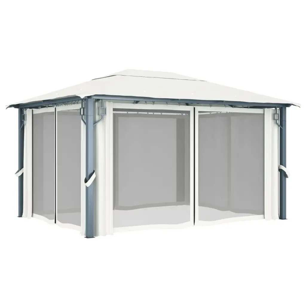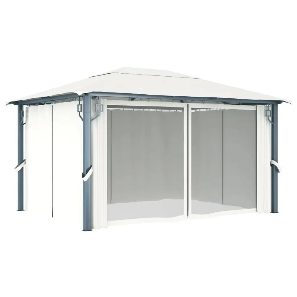 Vidaxl Aluminum Outdoor Gazebo With Cream Curtains, Insect Mesh Screens And Waterproof Oxford Fabric Roof - 157.5"x118.1"x106.3"