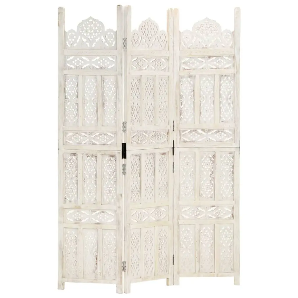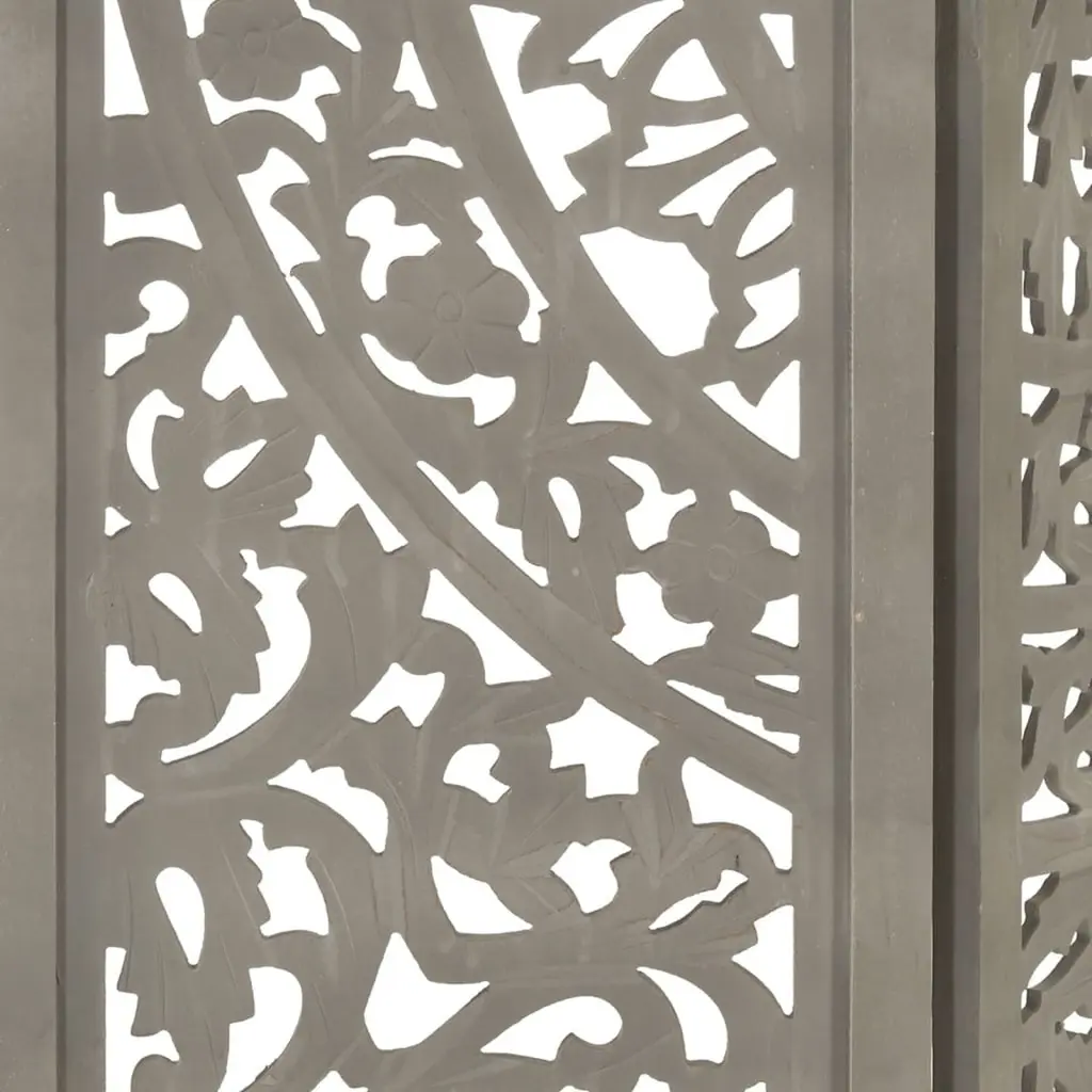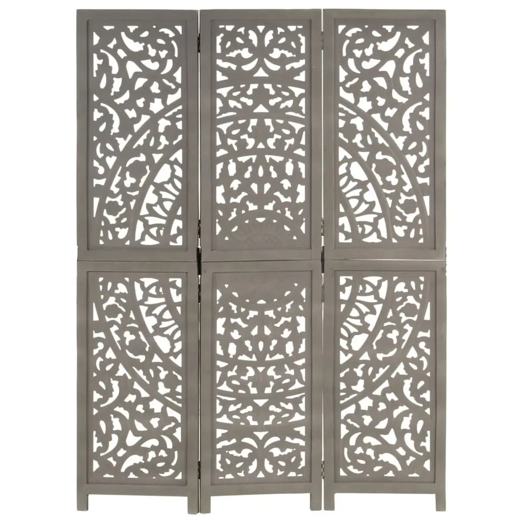 Vidaxl Hand Carved 3-Panel Room Divider Gray 47.2"x65" Solid Mango Wood