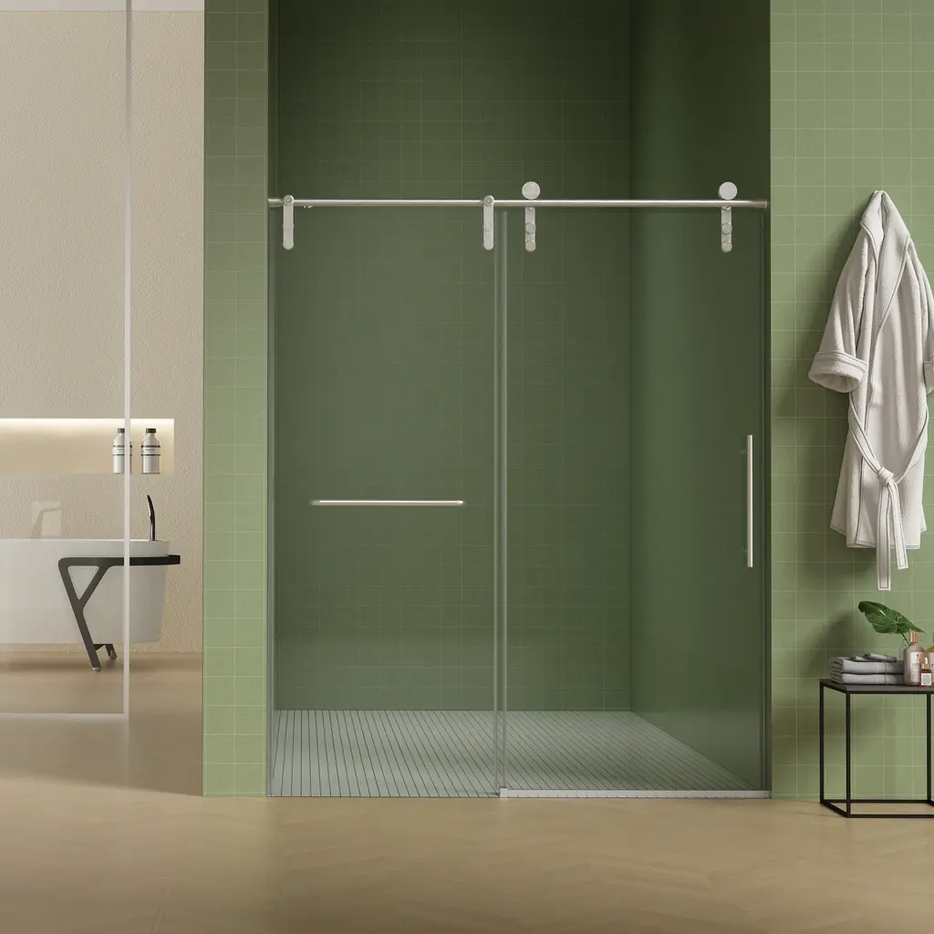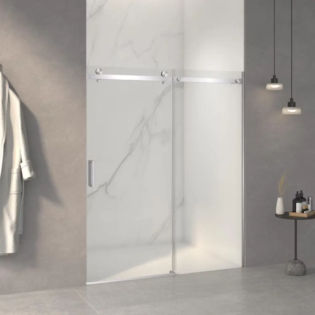 Our modern shower door brings an air of simplistic aesthetics to your bathroom! It offers exquisite styling with premium materials to create a minimalist shower partition, adding beauty and utility.Our shower door features 0.2"-thick safety glass supported by a heavy-duty aluminum frame, securing the structure once mounted. The frosted glass provides added privacy. The adjustable frame makes it easy to fit any bathroom size and layout. The stainless-steel handle, with a sleek design, adds stylish charm. The shower partition is also easy to clean; all you need to do is wipe away annoying watermarks!