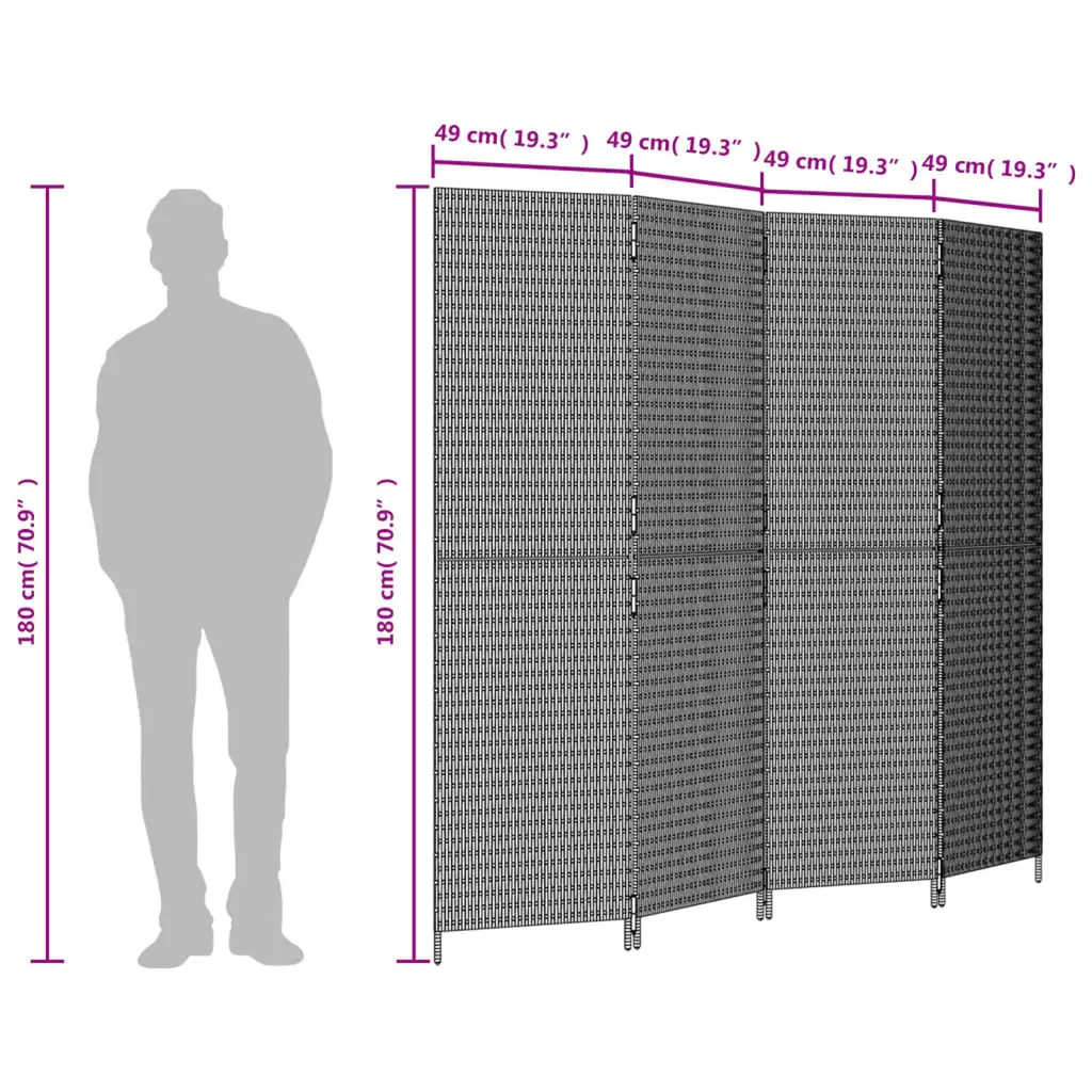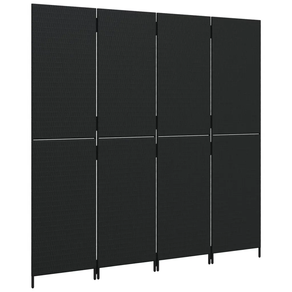Vidaxl Room Divider 4 Panels Black Poly Rattan