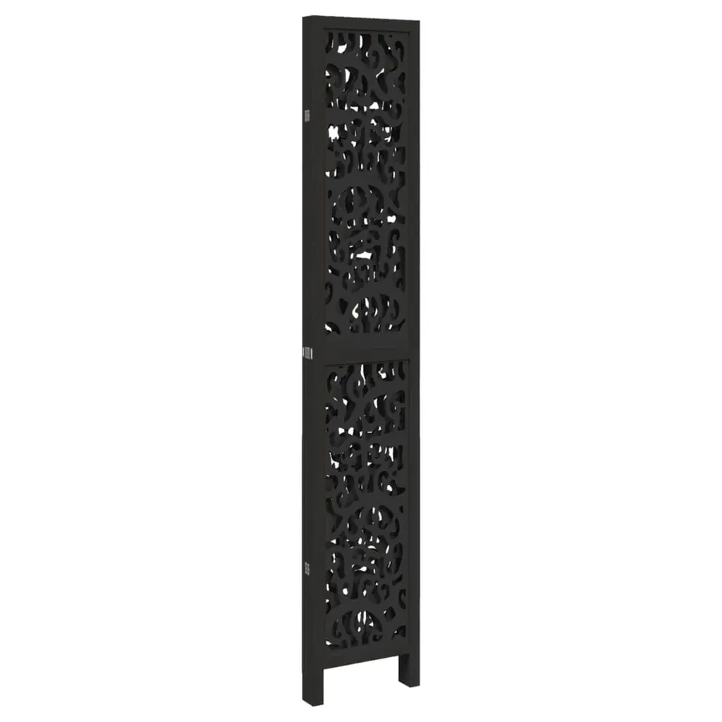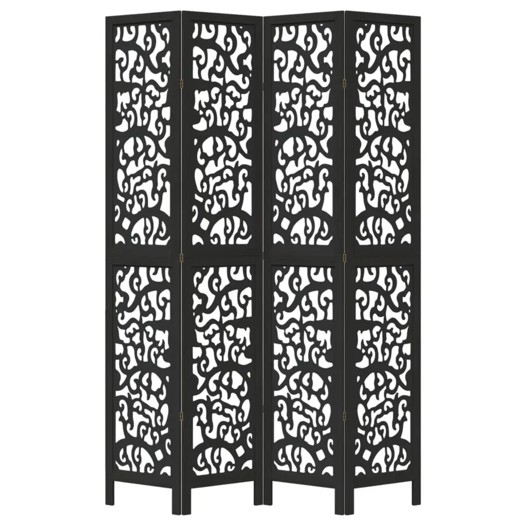 Vidaxl Room Divider 4 Panels Black Solid Wood Paulownia