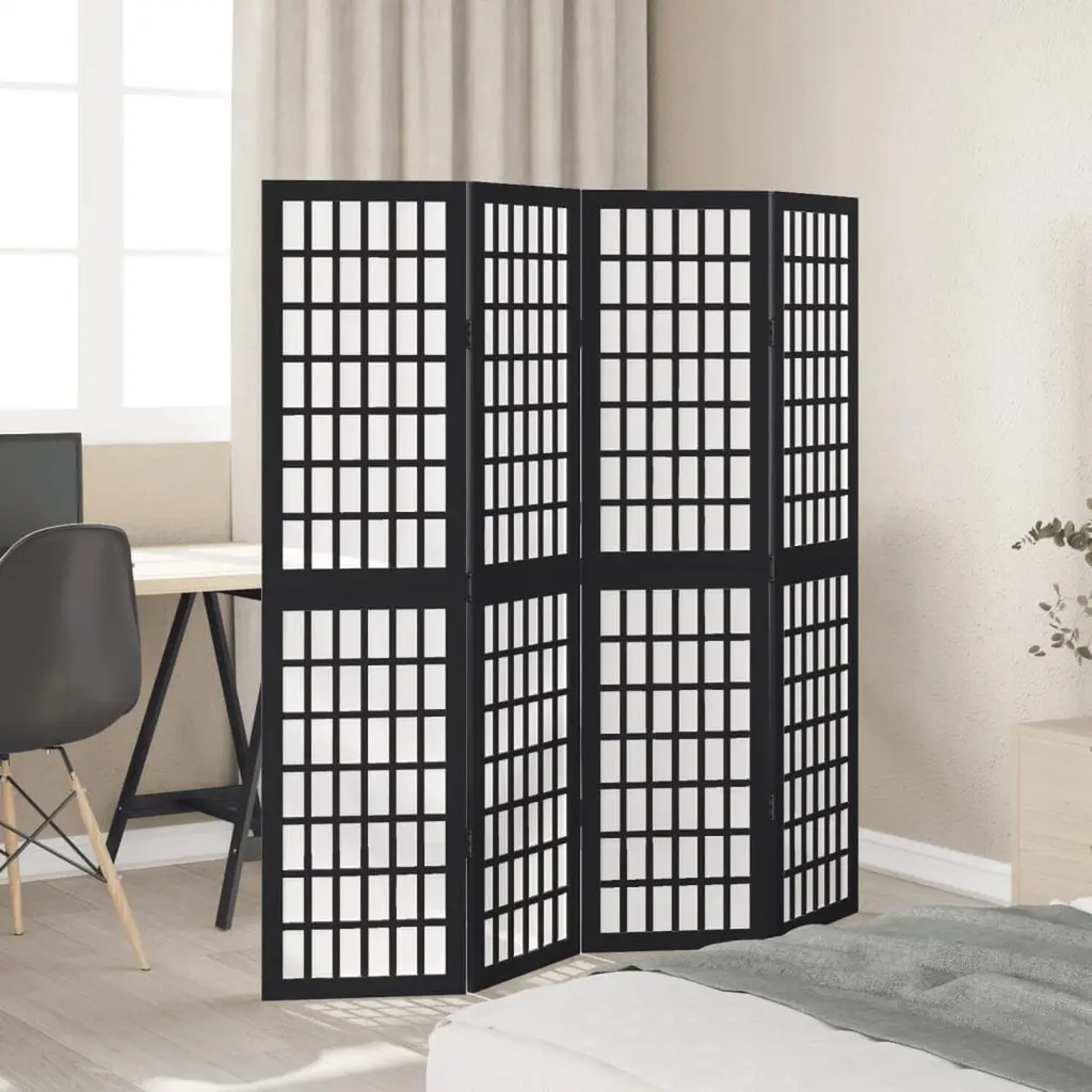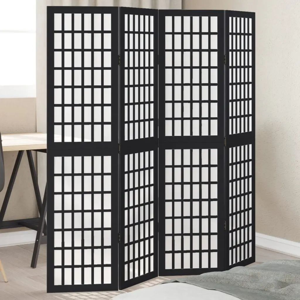 Vidaxl Room Divider 4 Panels Black Solid Wood Paulownia