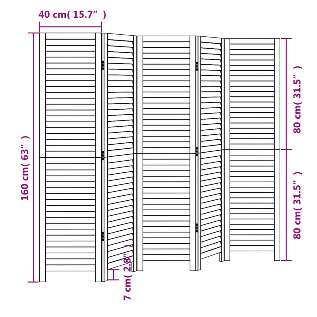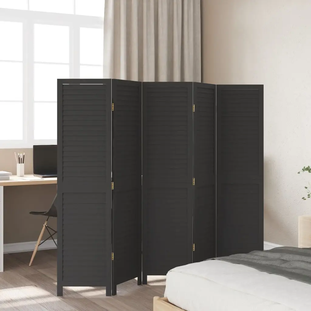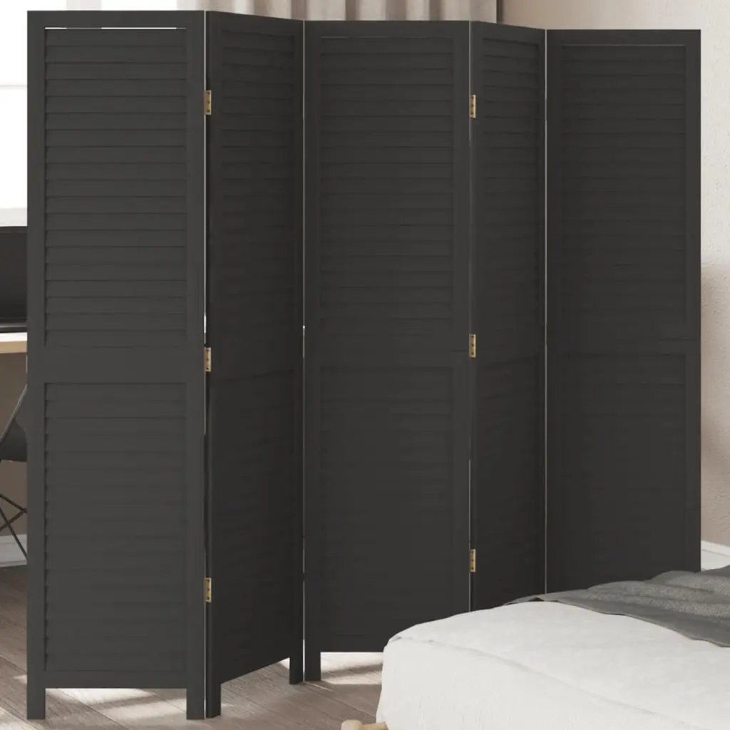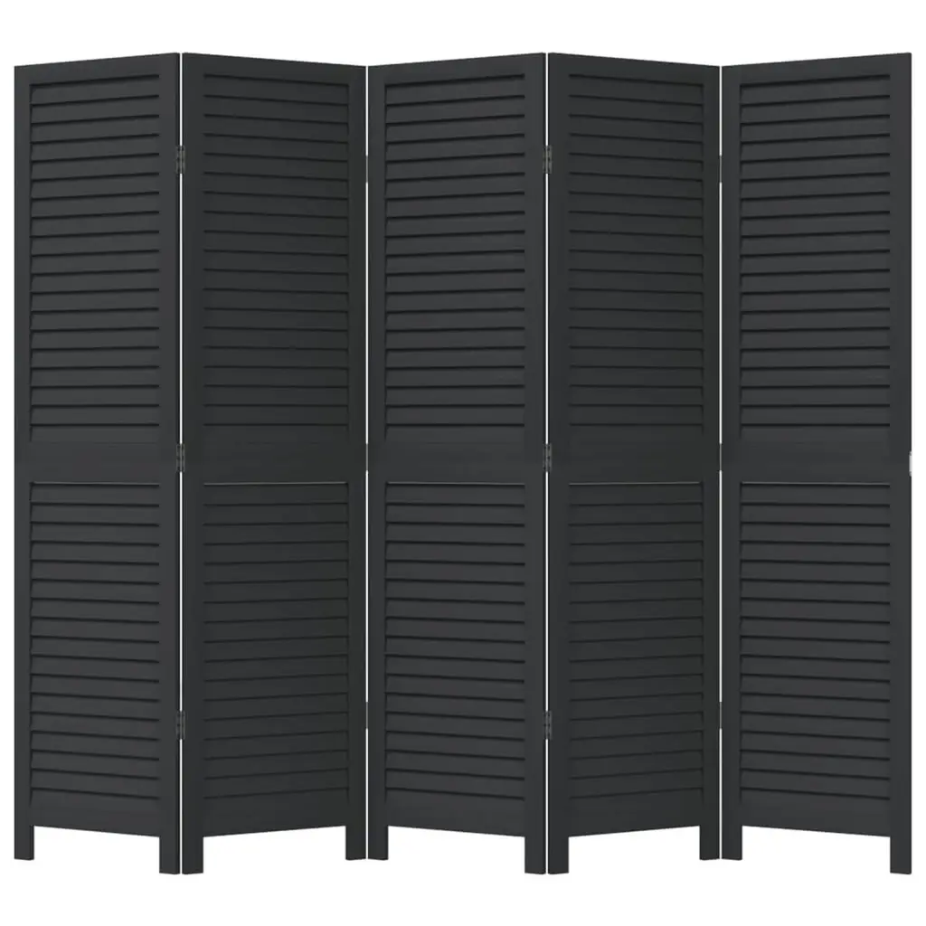 Vidaxl Room Divider 5 Panels Black Solid Wood Paulownia