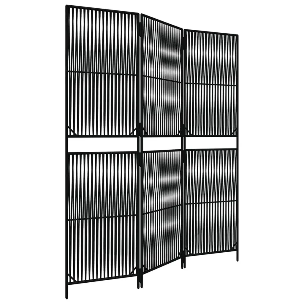 Decorate your home and divide up your space with this poly rattan room divider.Durable and easy to clean: Each privacy screen panel is made of poly rattan that is weather-proof, durable and easy to clean.Stable frame: The powder-coated steel frame ensures sturdiness and stability.Flexible and easy to fold: Each partition is connected by galvanized hinges and can be easily folded to some extent according to your needs to save space.Line weaving design: Featuring a line weaving design, this room screen will give you a stylish and artistic way to increase privacy while also keeping the room airy and light.Multipurpose: The room divider screen is great for creating private space both indoors and outdoors, such as a bedroom, living room, office, etc. You can also place it in front of a window to block intense sunlight.Important note:In order to fold completely flat, you will need to disassemble the galvanized hinges.