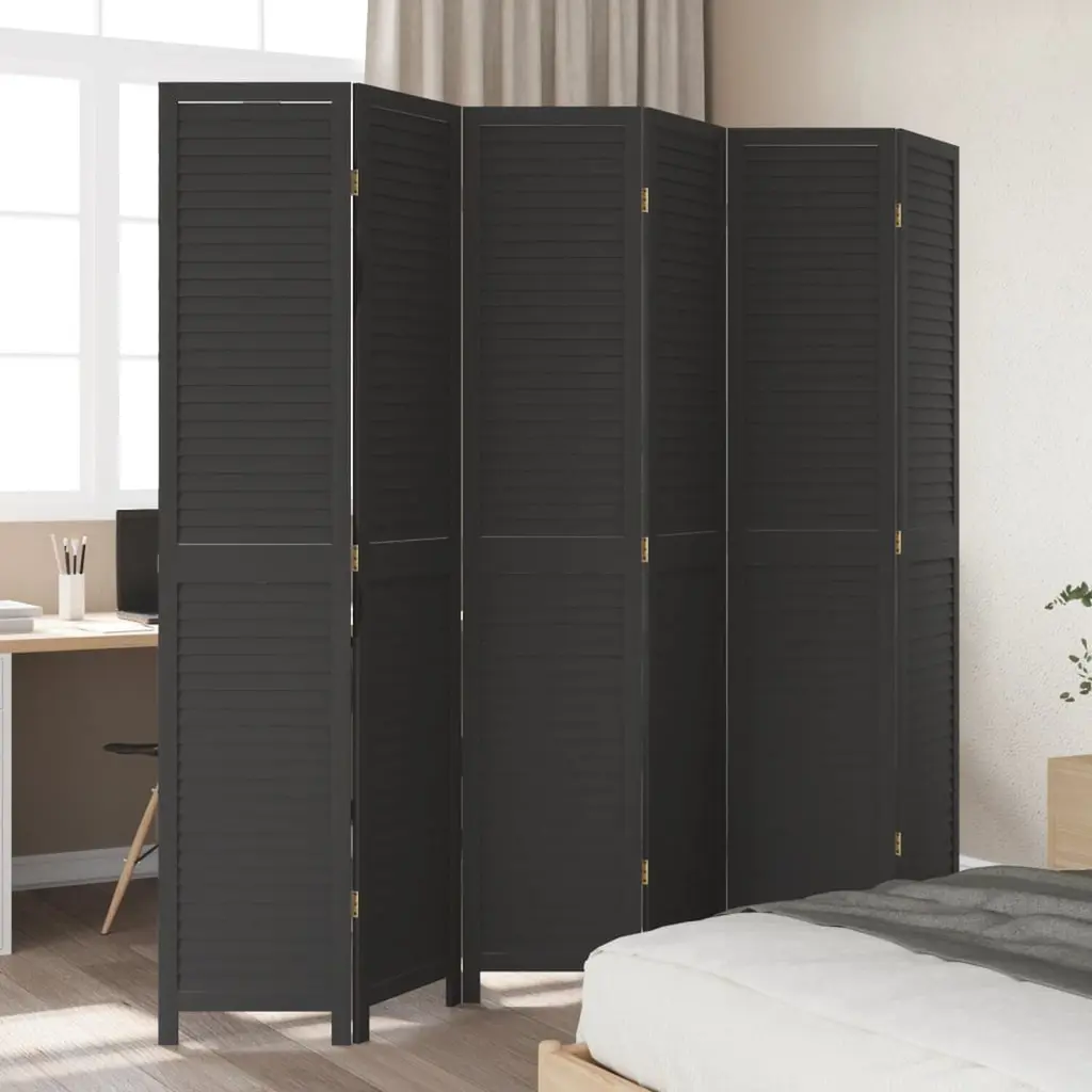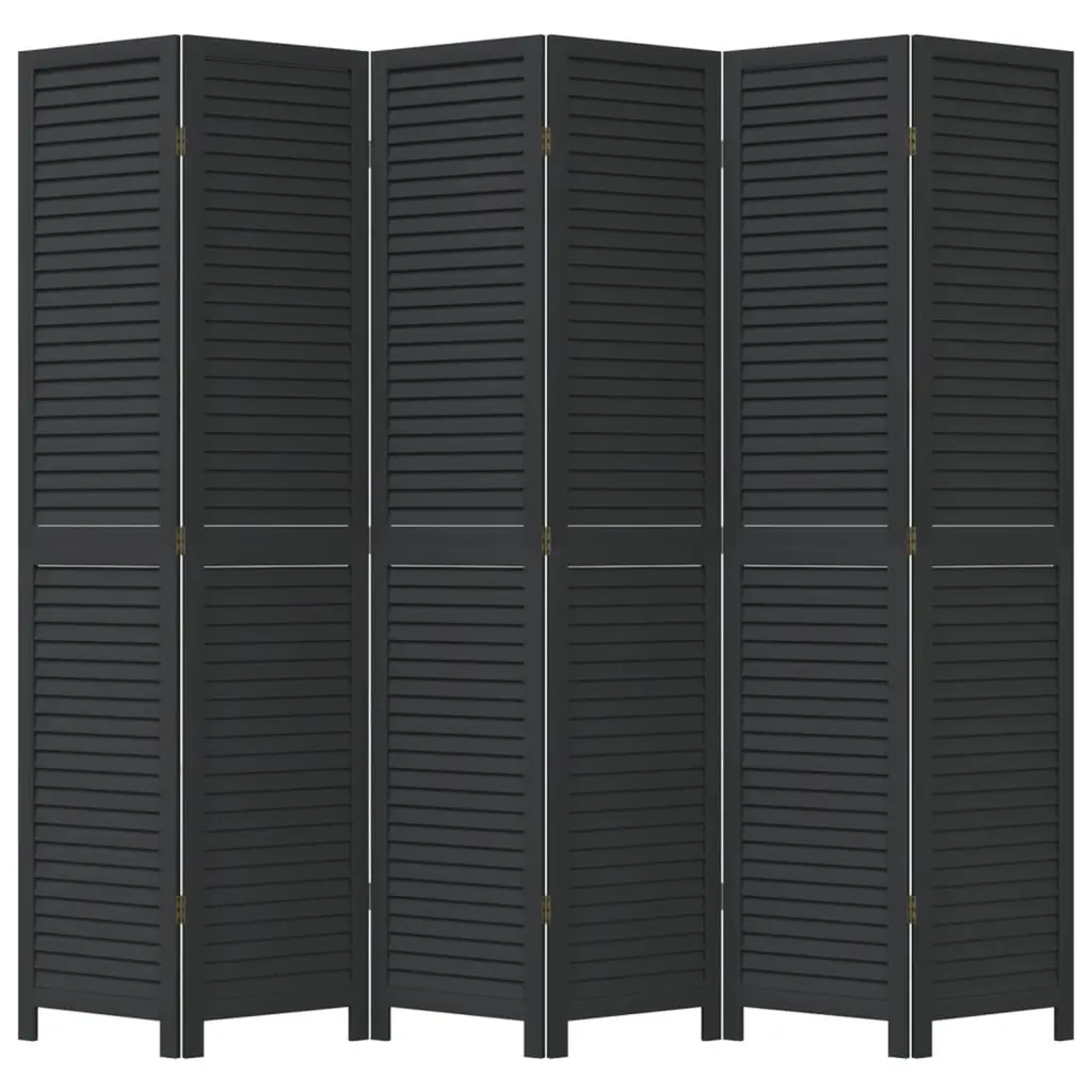 Vidaxl Room Divider 6 Panels Black Solid Wood Paulownia