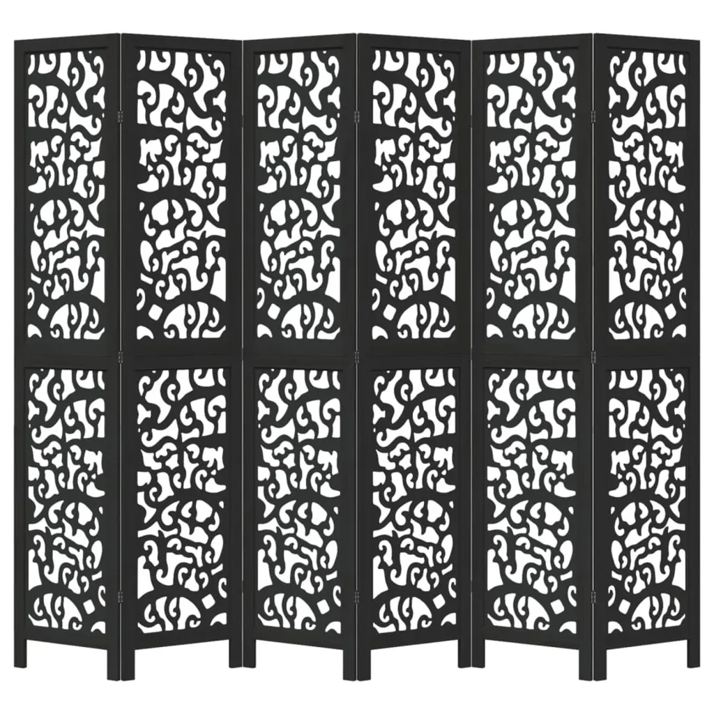 Vidaxl Room Divider 6 Panels Black Solid Wood Paulownia