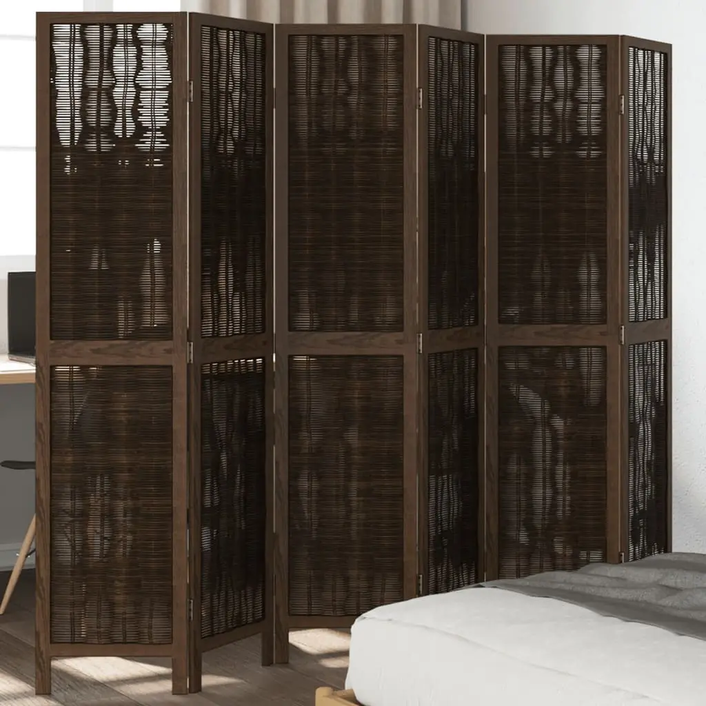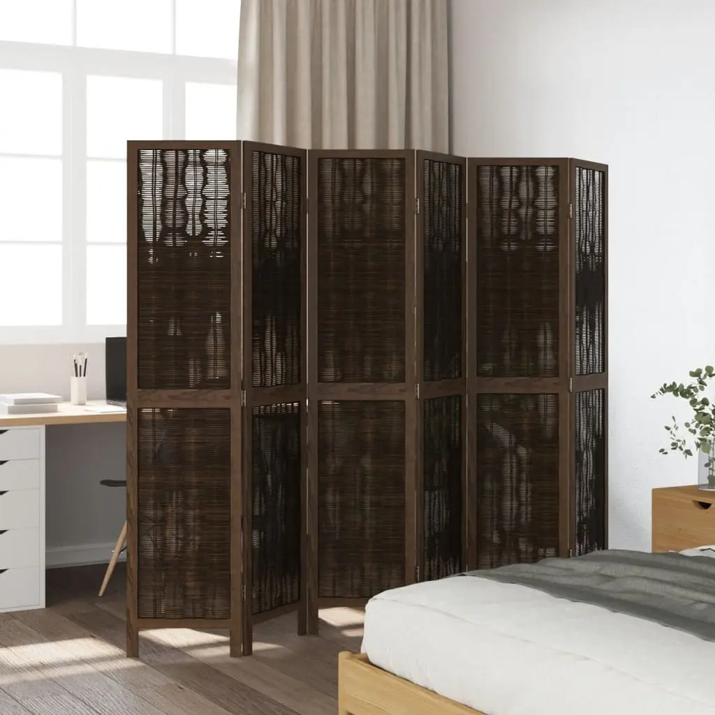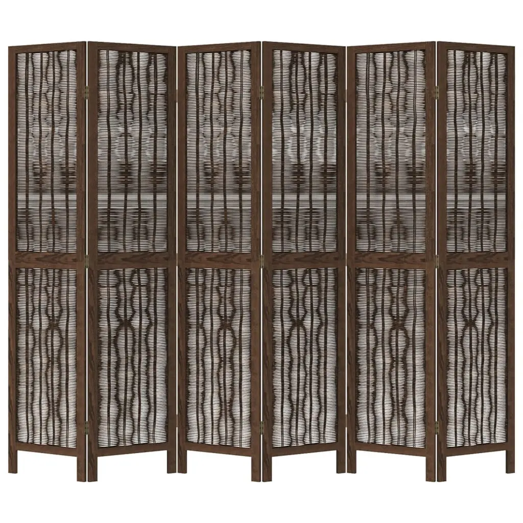 Vidaxl Room Divider 6 Panels Dark Brown Solid Wood Paulownia