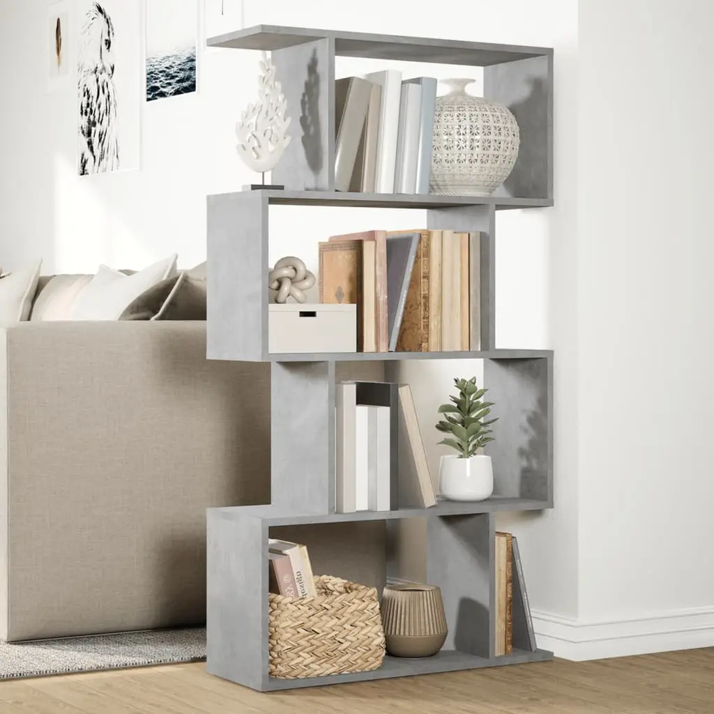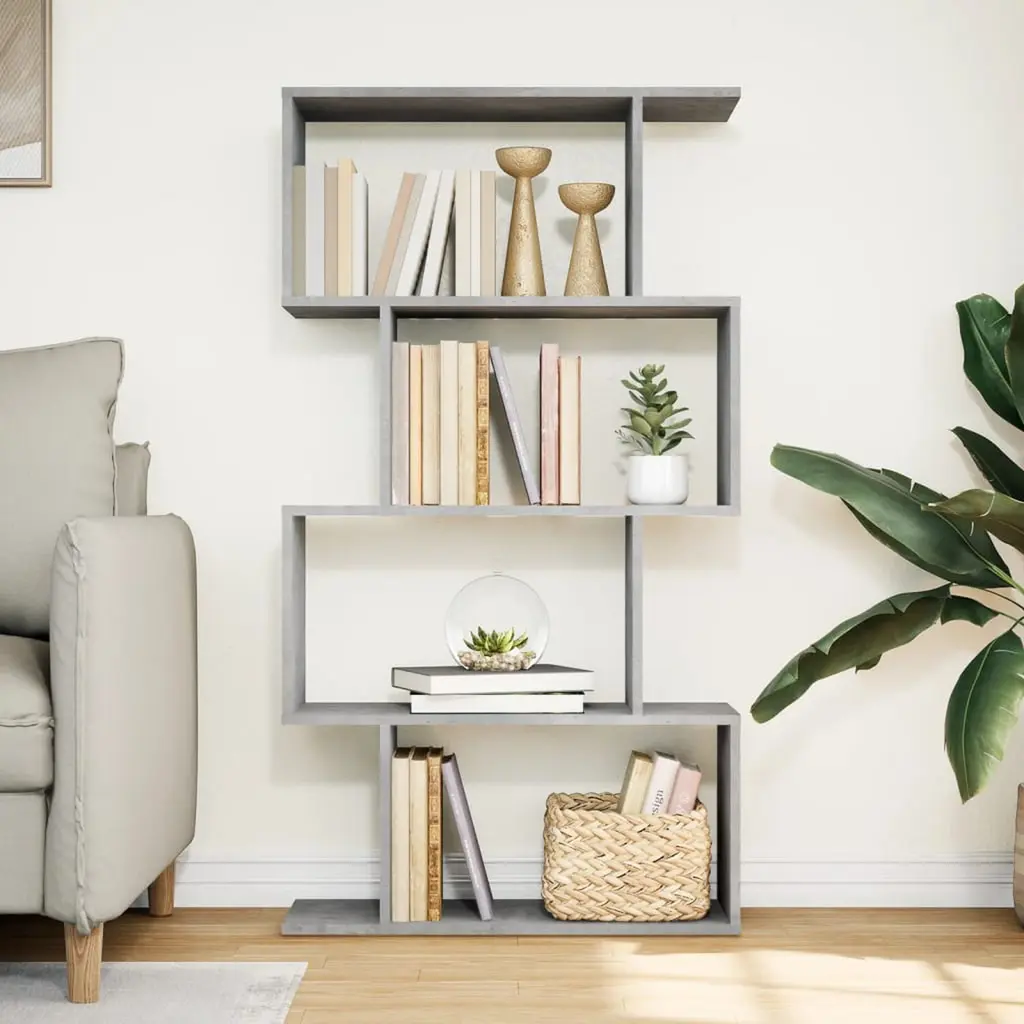 This Room Divider Bookcase is a modern piece that adds style and function to any indoor space. With its quirky 4-tier design and concrete grey finish, it’s not just a useful storage solution; it’s also a classy display unit that spruces up your living room, study, or bedroom. Spacious 4-tier shelving gives you versatile storage for books, decor, and more, making organization a breeze. Sleek concrete grey finish and geometric pattern add a modern touch, helping it blend right in with your decor. Perfect for use as a room divider, it can create separate areas in open spaces while keeping a cohesive design. Made from engineered wood, the strong build supports a maximum weight of 220.5 lbs, so you can store heavier items safely. Easy to keep clean; just wipe it down with a damp cloth to keep it looking sharp, and steer clear of harsh chemicals to ensure it lasts.