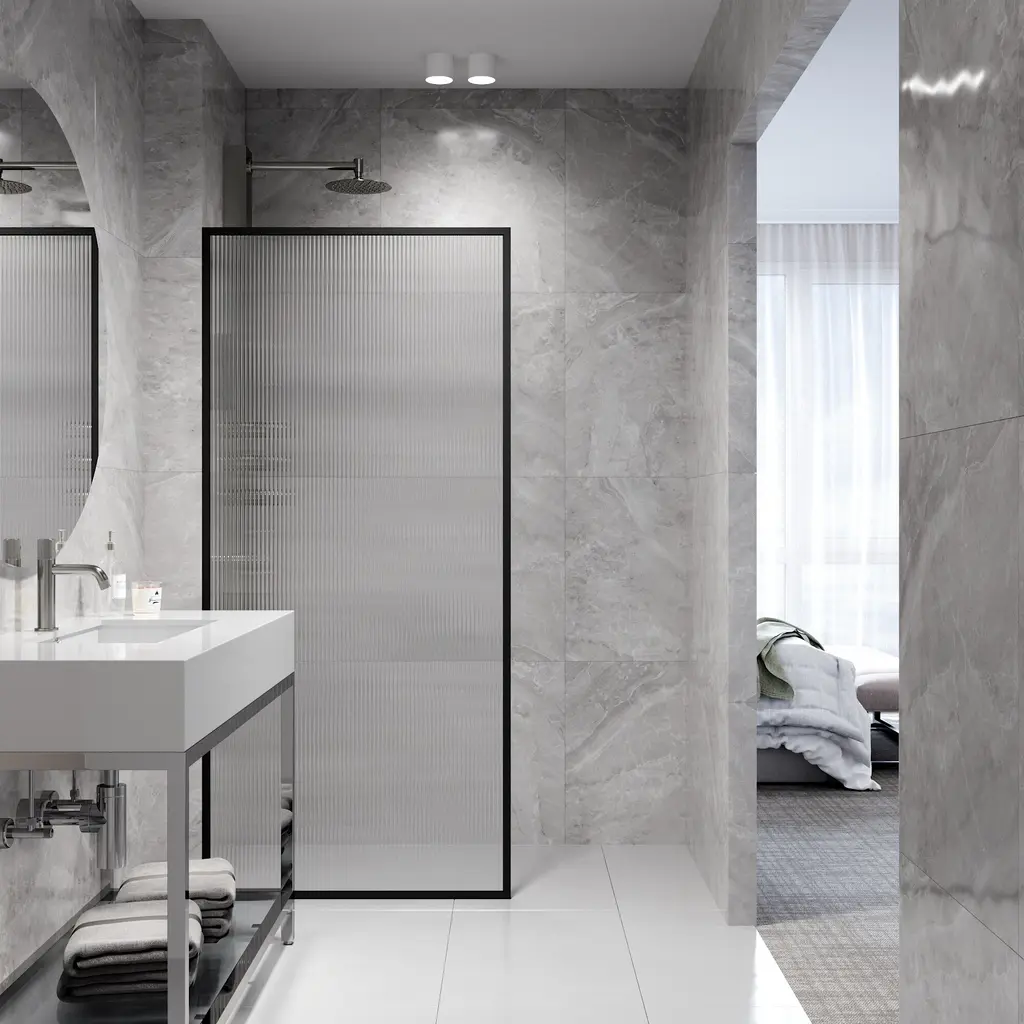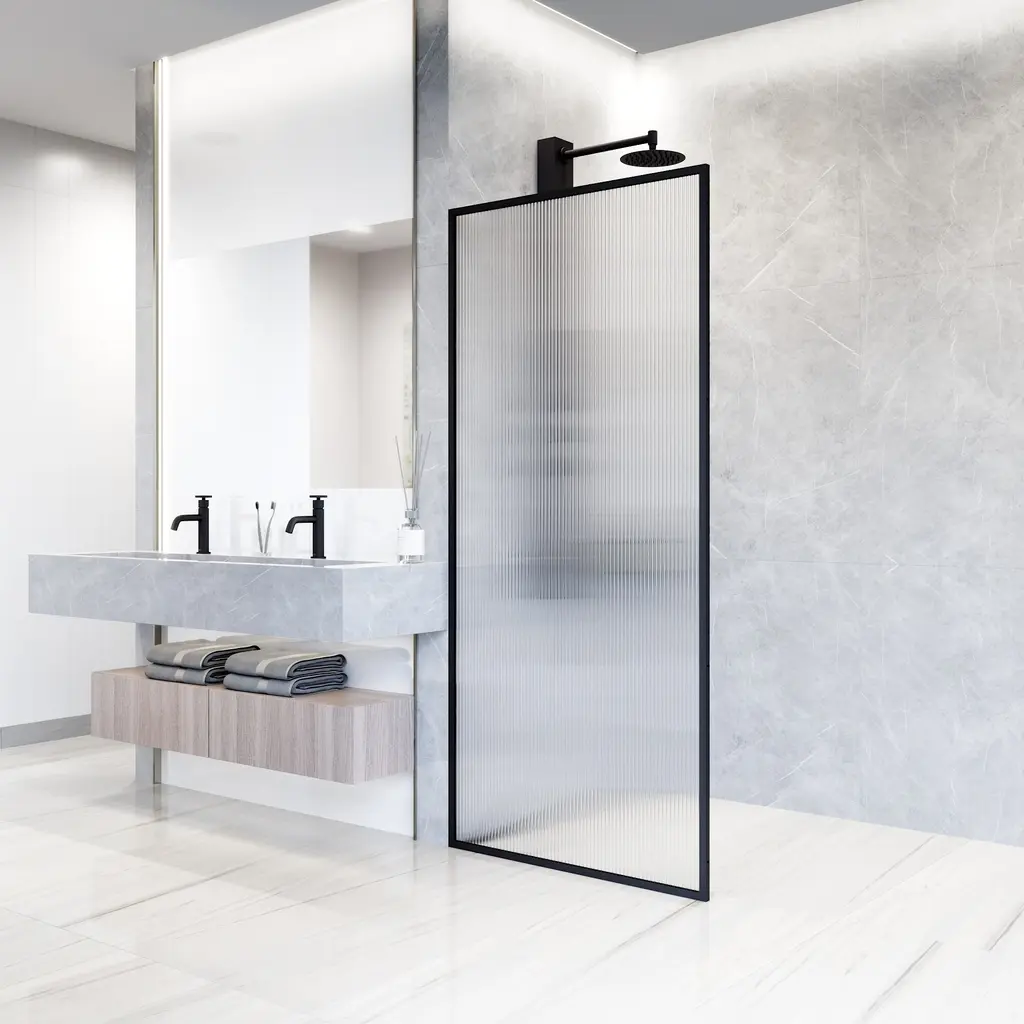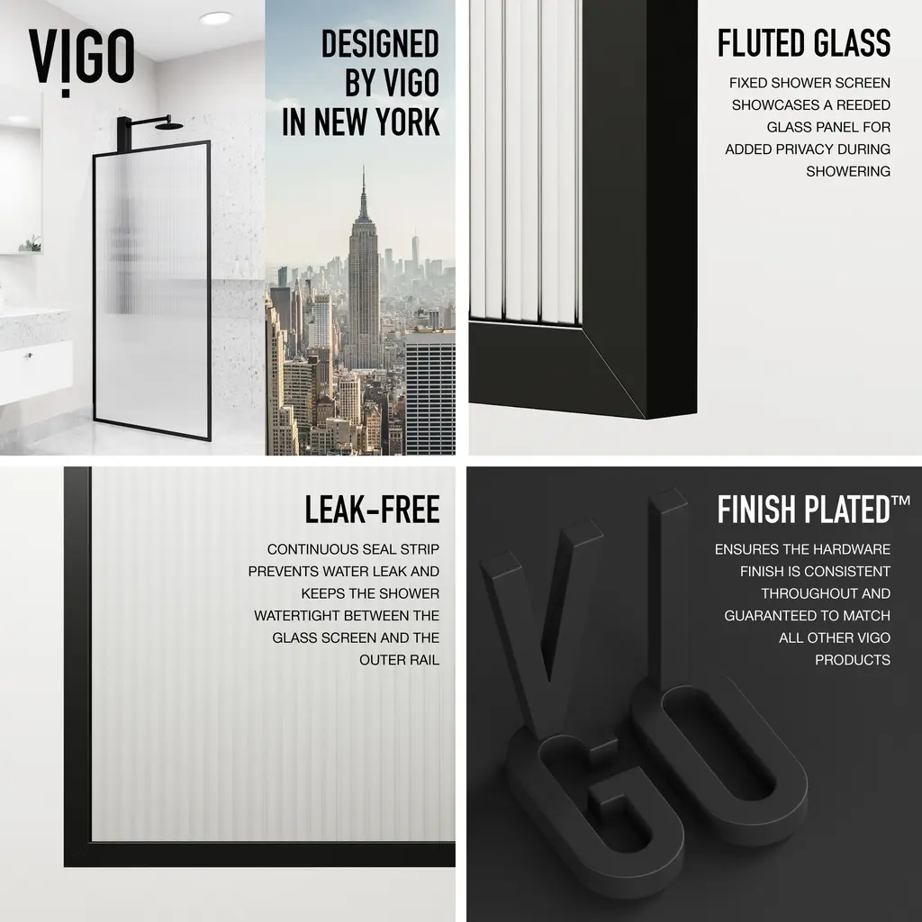 VIGO presents the Meridian Fixed Frame Shower Screen. Its fluted tempered glass resists scratches and accidental breakage, making the Meridian exceptionally safe. The fluted glass Shower Screen provides privacy to the designated shower area in your bathroom. VIGO's premium 7-layer hardware resists tarnishing, keeping the shower screen like-new for years to come. Its full-length transparent vertical and bottom seals keep your shower watertight. The included simple instructions allow for an easy DIY-style installation at home. Features: