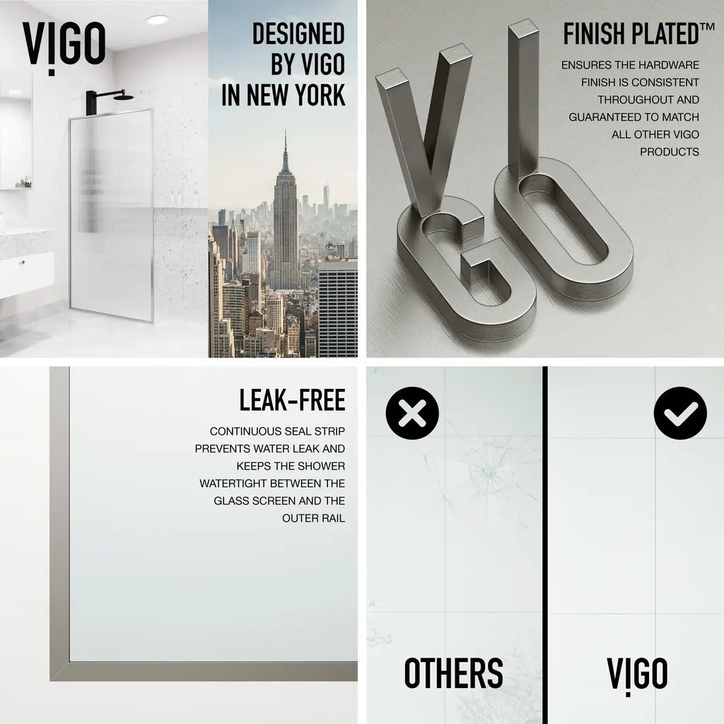 VIGO presents the Meridian Fixed Frame Shower Screen. Its clear tempered glass resists scratches and accidental breakage, making the Meridian exceptionally safe. VIGO's premium 7-layer hardware resists tarnishing, keeping the Meridian shower screen like-new for years to come. The clear glass shower screen with a frame gives the bathroom an open feel while giving a designated shower area in your bathroom. The full-length transparent vertical and bottom seals keep your shower watertight. The included simple instructions allow for an easy DIY-style installation at home.
