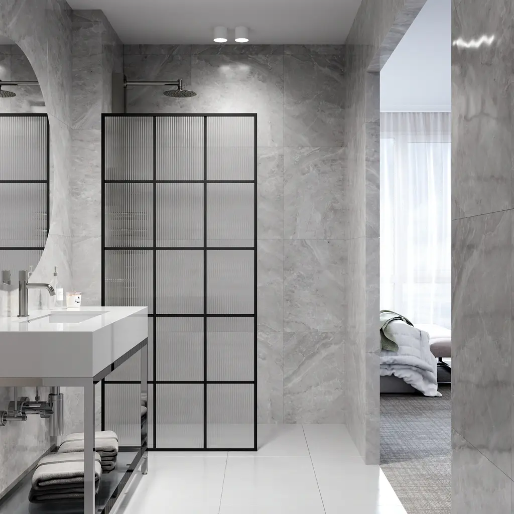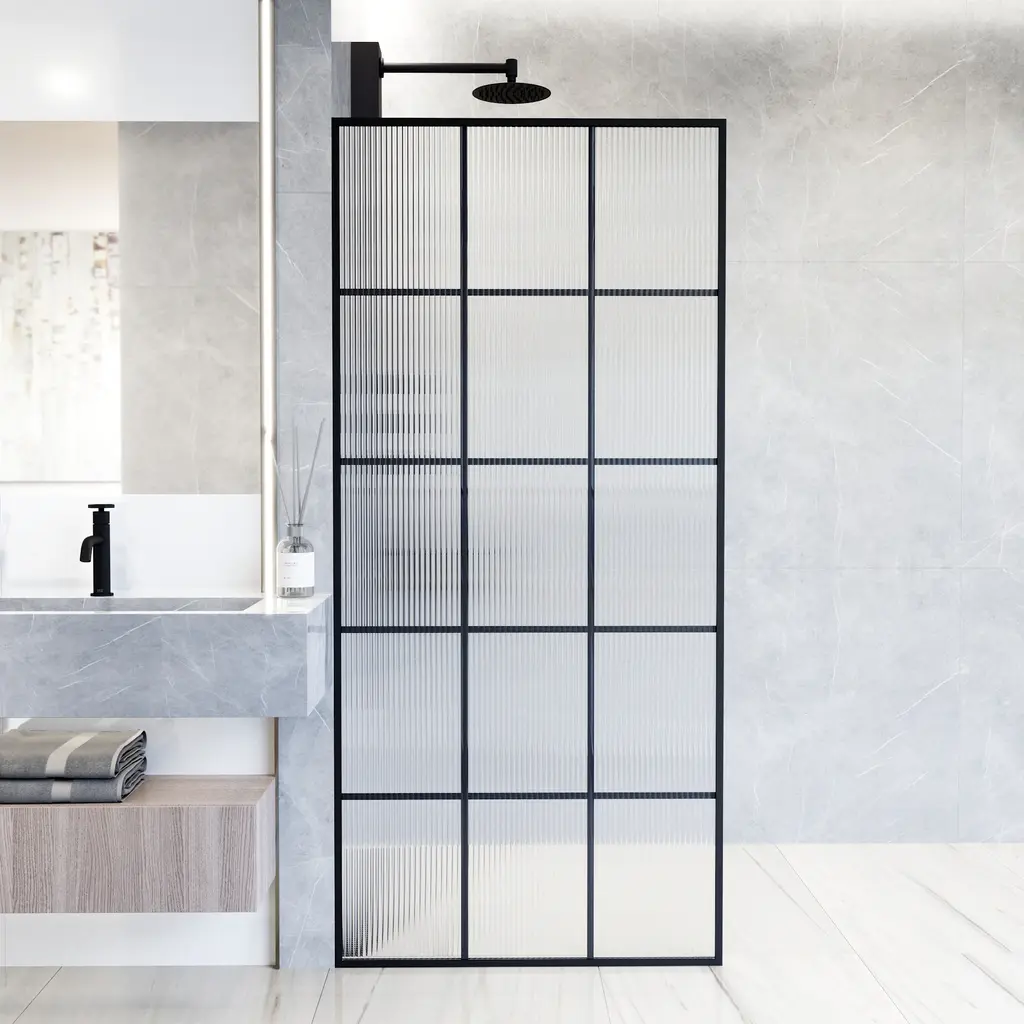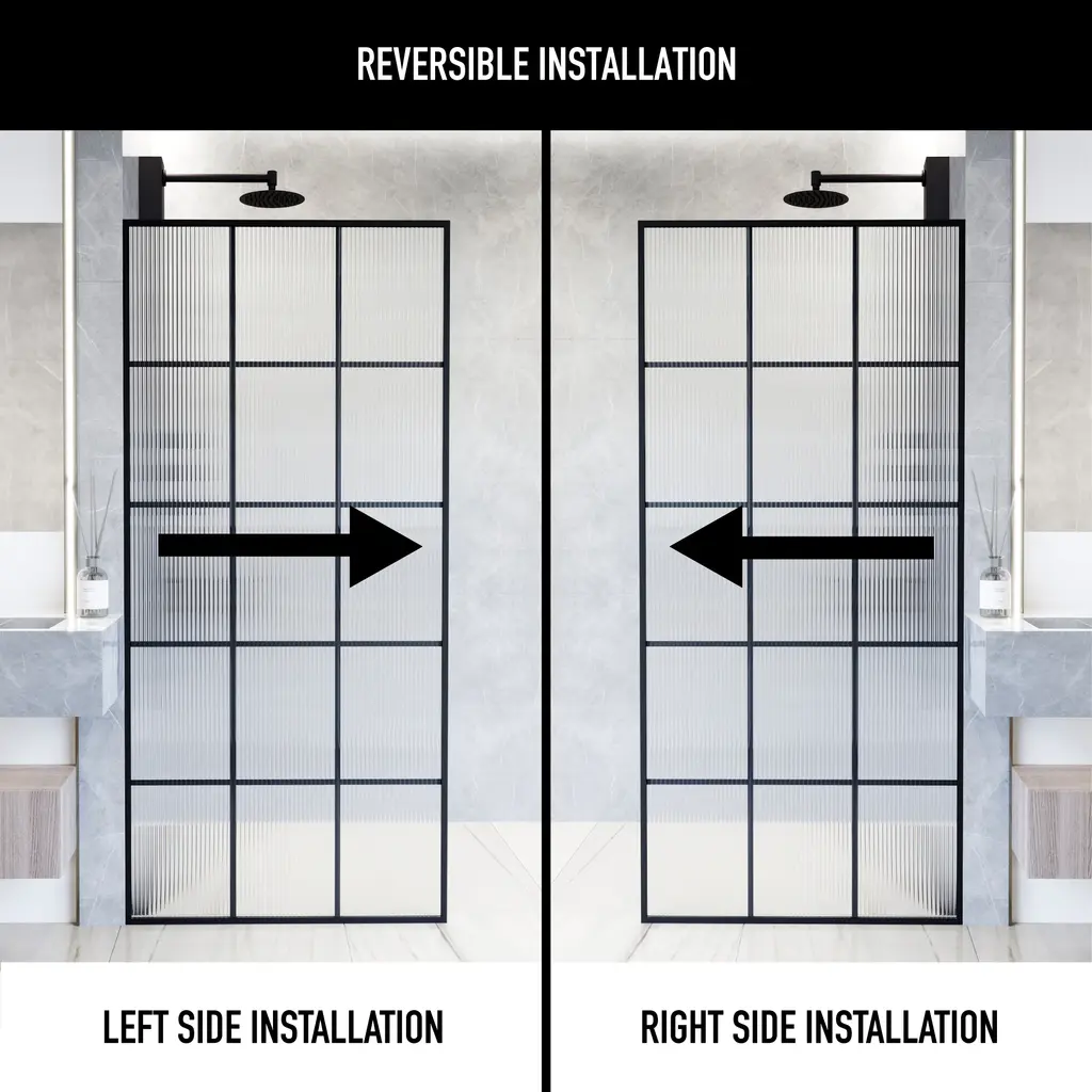 VIGO presents the Mosaic Fixed Framed Shower Screen. Its fluted tempered glass resists scratches and accidental breakage, making the Mosaic exceptionally safe. This model features black painted-on horizontal and vertical lines that mimic metal frames, keeping the screen lightweight without compromising style. The Mosaic features flexible installation options, allowing it to be connected to any wall and extend outward. Its full-length transparent vertical and bottom seals keep the shower watertight. VIGO's premium 7-layer hardware resists tarnishing, keeping the Mosaic shower screen like-new for years to come.