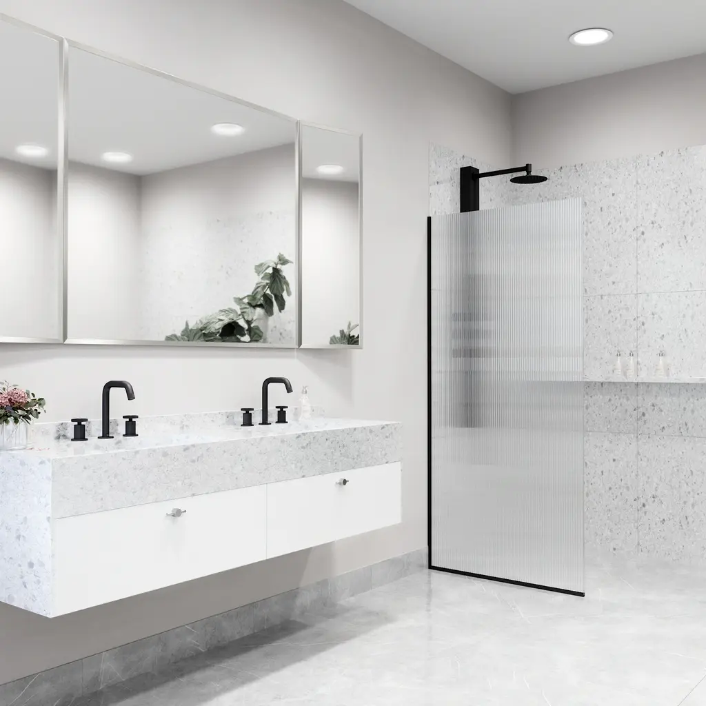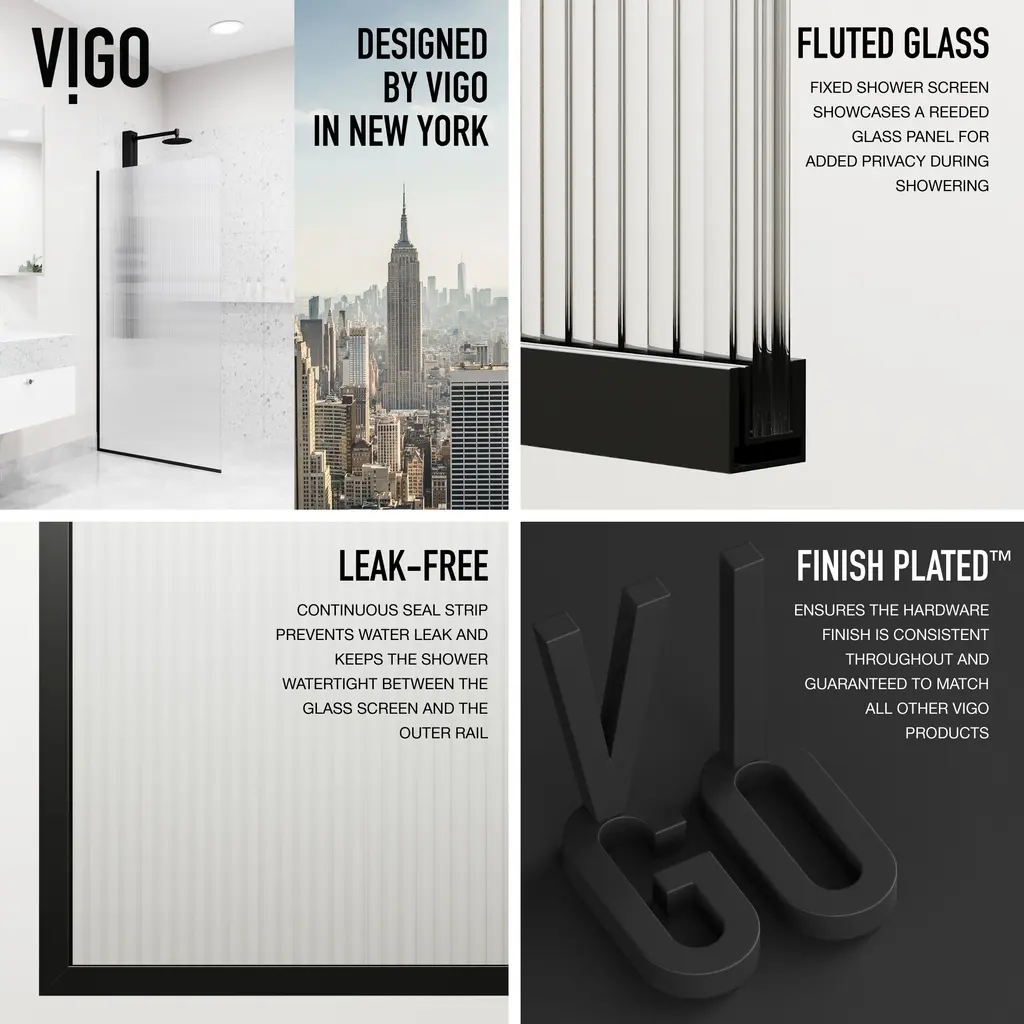 VIGO presents the Zenith Fixed Shower Screen. Its fluted tempered glass resists scratches and accidental breakage, making the Zenith exceptionally safe. Its full-length transparent vertical and bottom seals keep the shower watertight. The fluted glass Shower Screen provides privacy to the designated shower area in your bathroom. VIGO's premium 7-layer hardware resists tarnishing, keeping the Zenith Shower Screen like-new for years to come. Features: