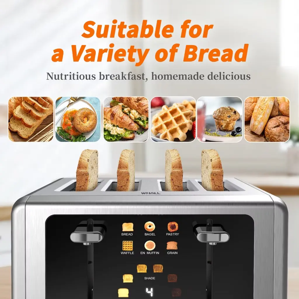 Whall 4 Slice Toaster, Touchscreen Toaster, Stainless Steel Toaster Digital Timer, Dual Control Panel, 6 Shade Settings&6 Bread Types, Wide Slots