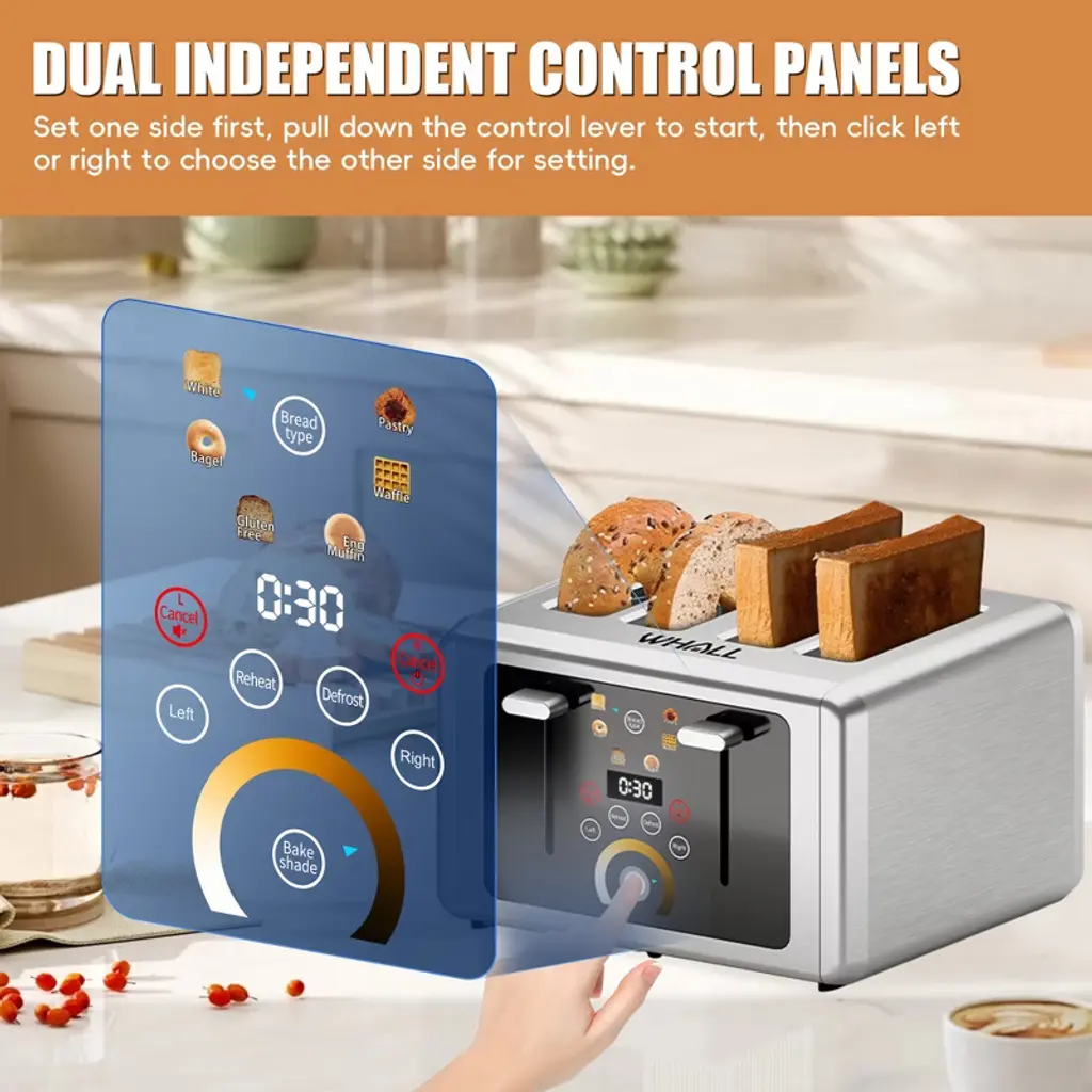Whall Stainless Steel Touchscreen Toaster 4 Slice, 6 Shade Settings, Bagel, Cancel, Defrost Functions