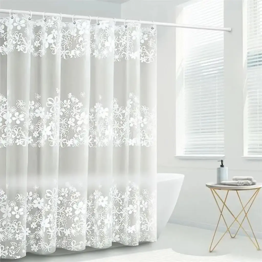 White Flower Vine Mildew Proof Curtains Translucent Bath Screen - White