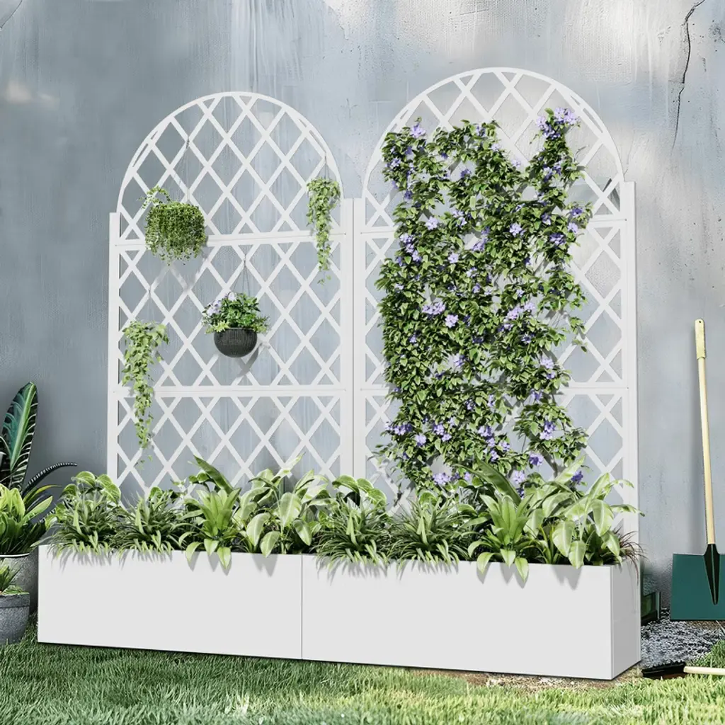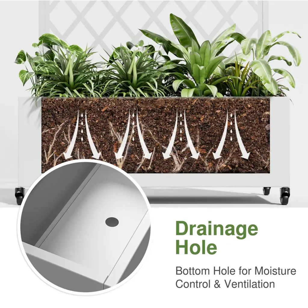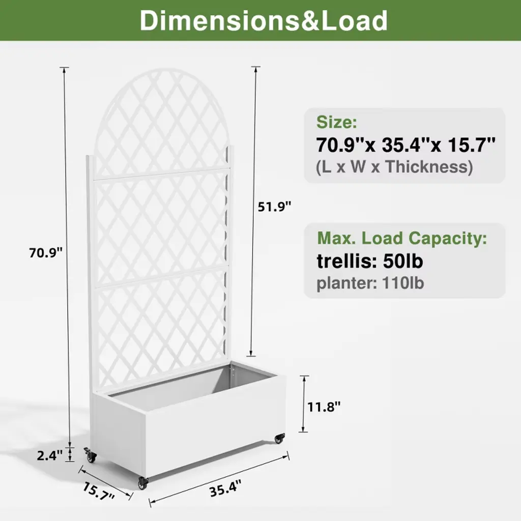 Introducing the Metal Planter Box with Trellis Raised Garden Bed with Arbor Privacy Screen with Wheels - the ultimate solution for creating a beautiful and functional outdoor or indoor space. This versatile garden bed combines the elegance of a trellis with the practicality of a raised bed. It also can be a perfect choice as a privacy screen when creating more beauty for your home.