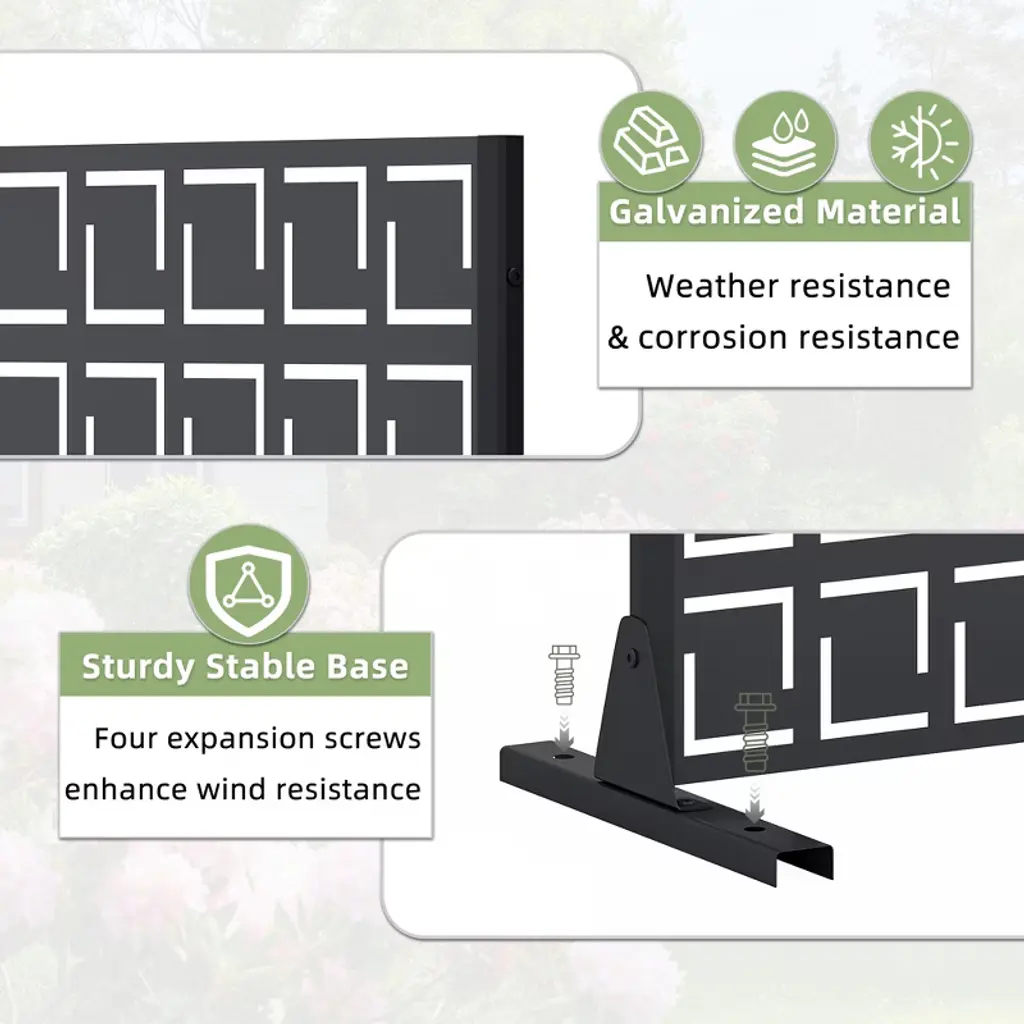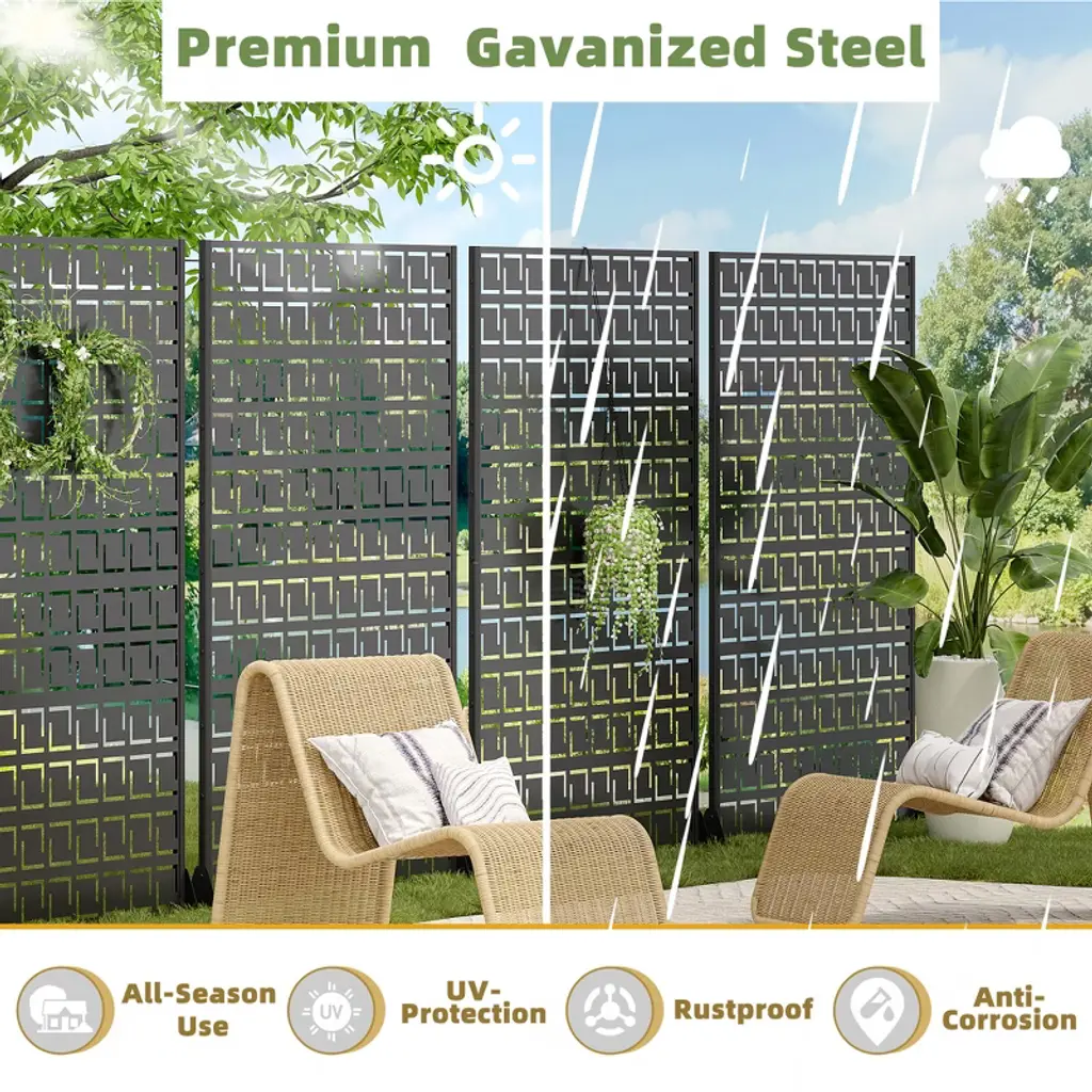 Upgrade your outdoors with sleek metal partitions¡ªperfect for privacy, trellises, or stylish fencing! Durable, weather-resistant, and effortlessly chic, these panels add modern charm while defining your space. Ideal for gardens, patios, or balconies, they support climbing plants or create intimate retreats. Transform any area with elegance and function!