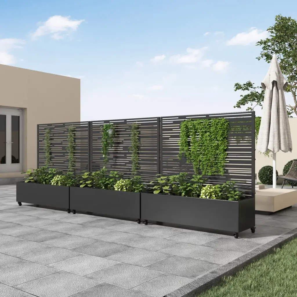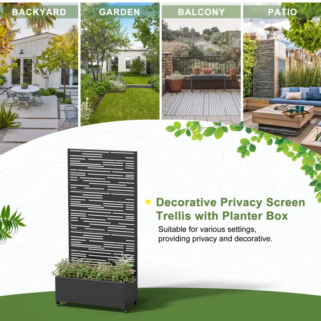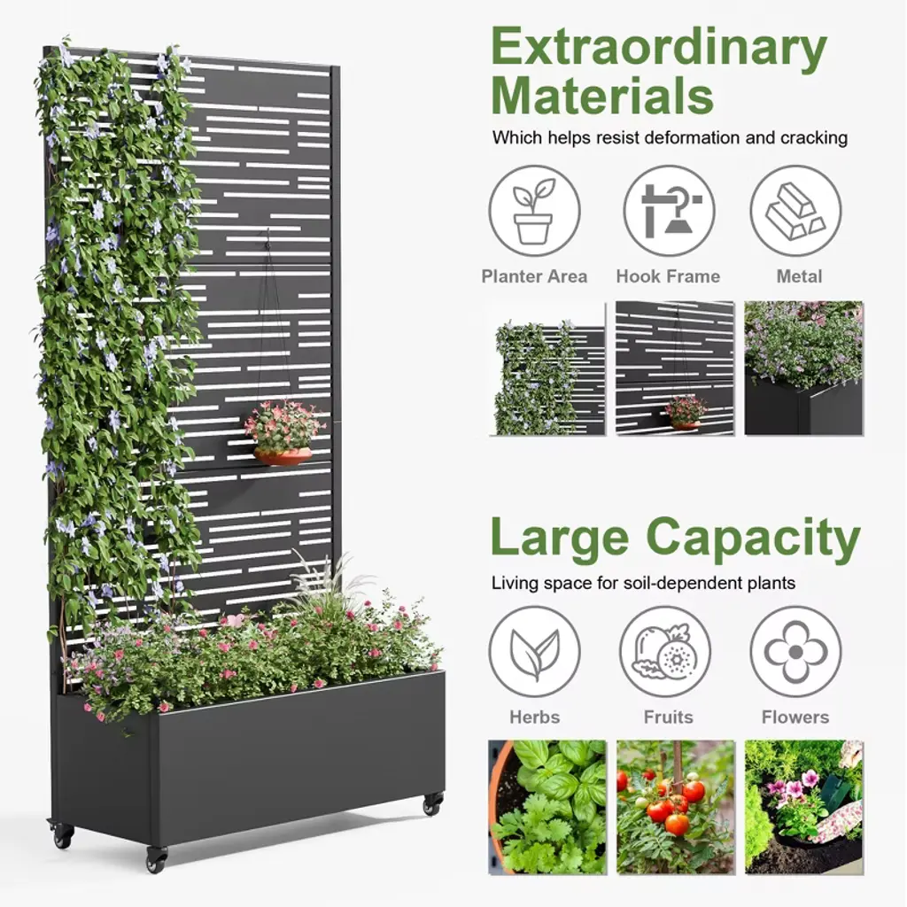 Introducing the Metal Planter Box with Trellis Raised Garden Bed with Arbor Privacy Screen with Wheels - the ultimate solution for creating a beautiful and functional outdoor or indoor space. This versatile garden bed combines the elegance of a trellis with the practicality of a raised bed. It also can be a perfect choice as a privacy screen when creating more beauty for your home.