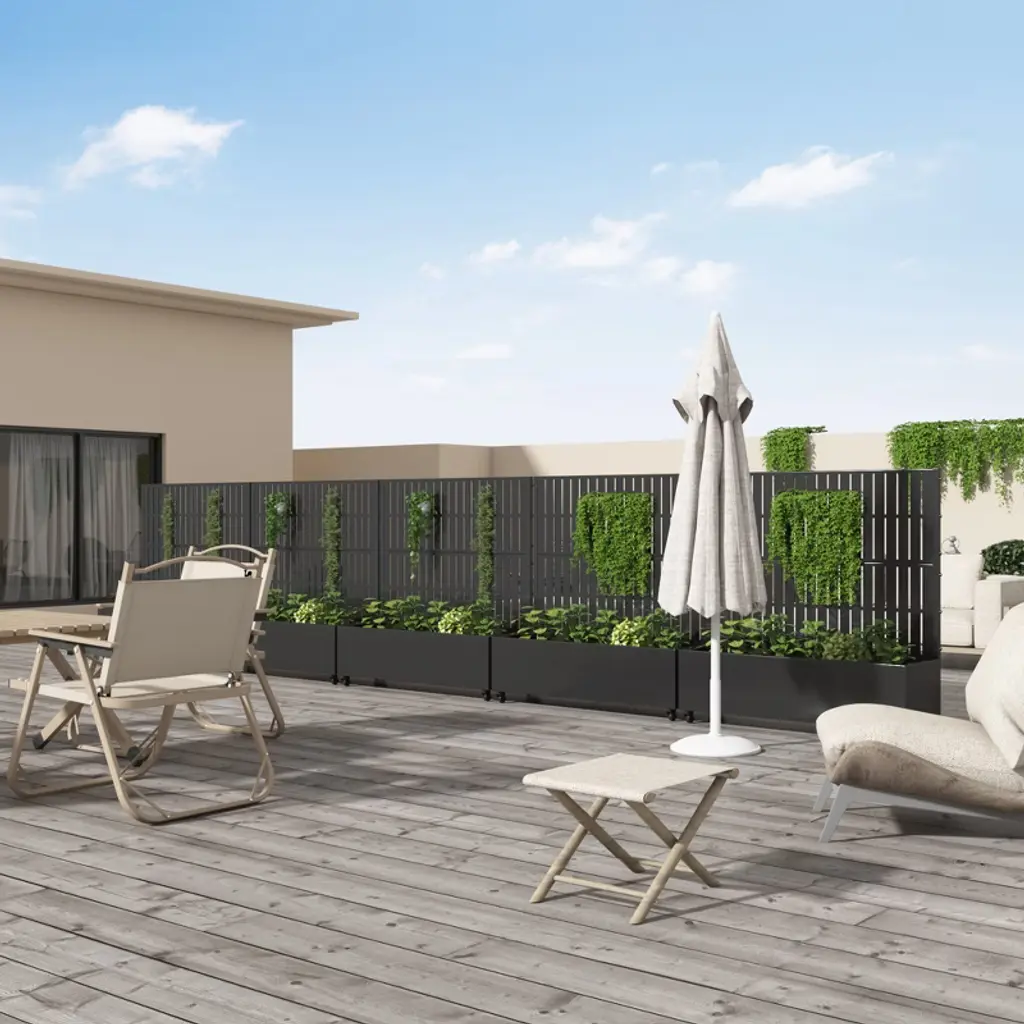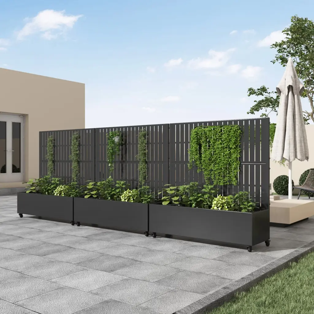 Introducing the Metal Planter Box with Trellis Raised Garden Bed with Arbor Privacy Screen with Wheels - the ultimate solution for creating a beautiful and functional outdoor or indoor space. This versatile garden bed combines the elegance of a trellis with the practicality of a raised bed. It also can be a perfect choice as a privacy screen when creating more beauty for your home.