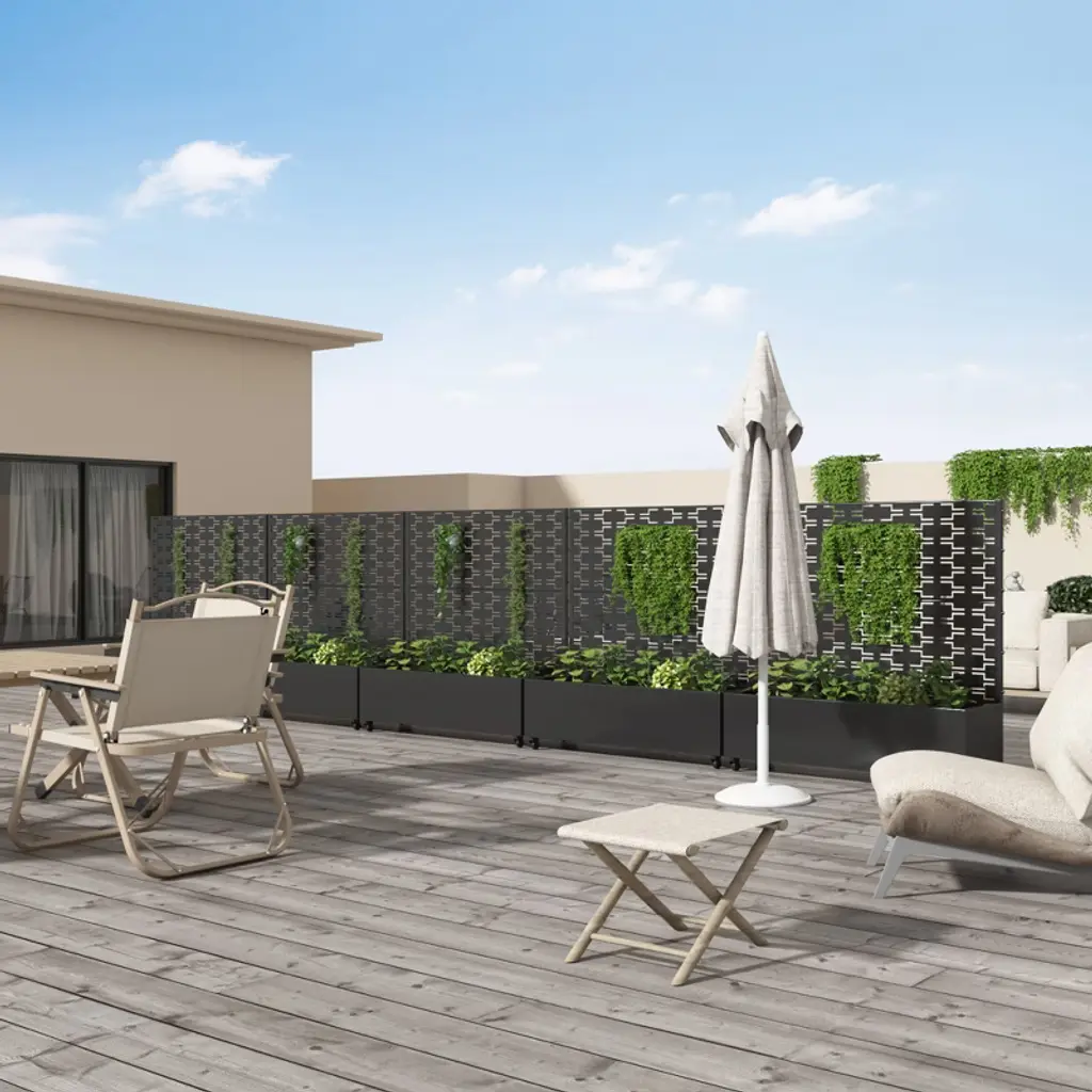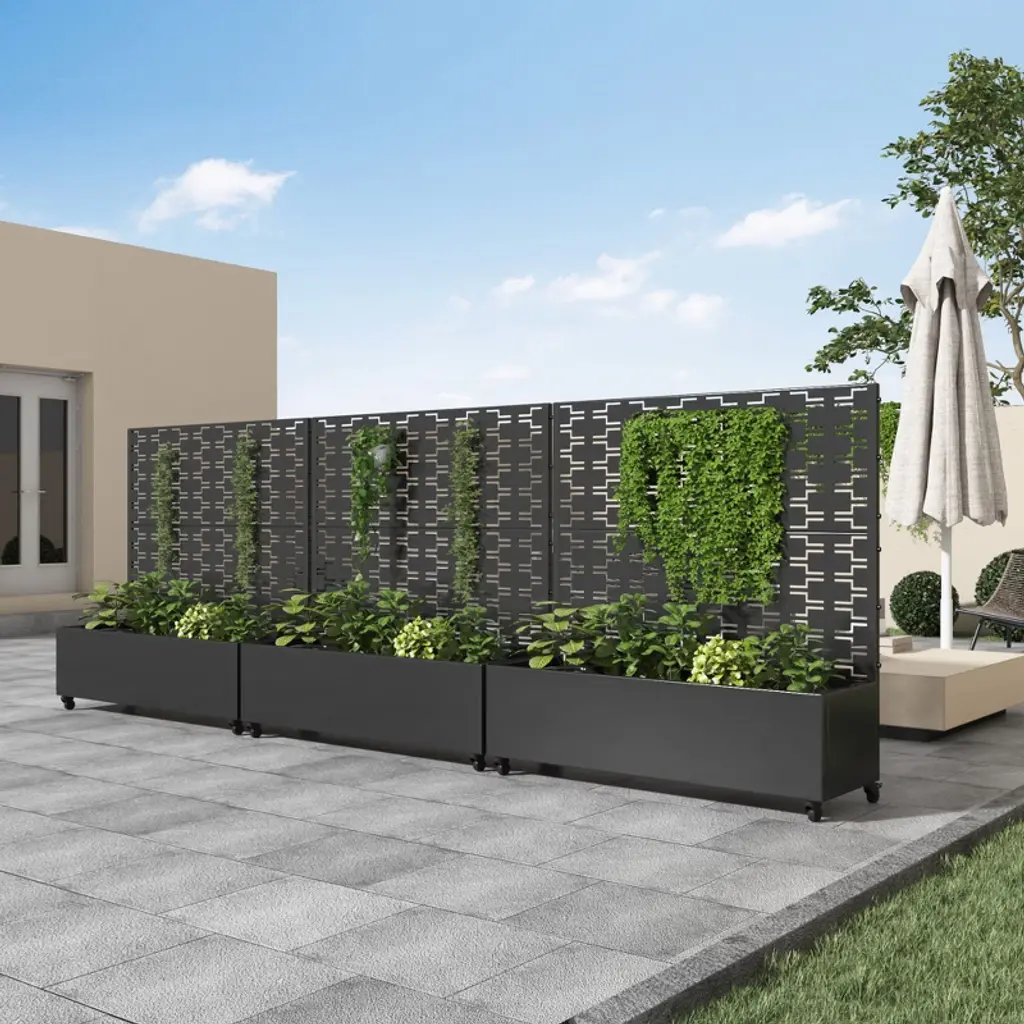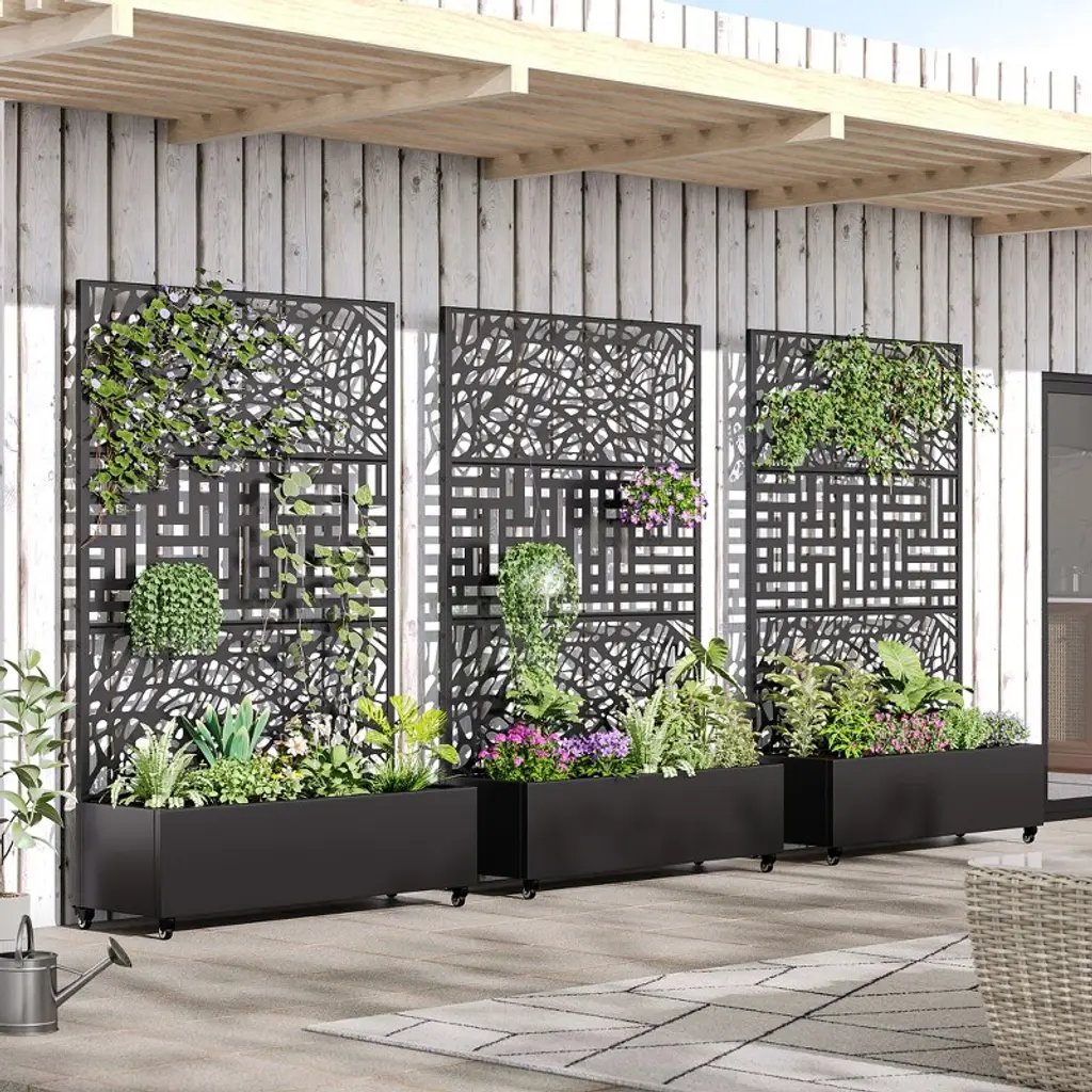 Introducing the Metal Planter Box with Trellis Raised Garden Bed with Arbor Privacy Screen with Wheels - the ultimate solution for creating a beautiful and functional outdoor or indoor space. This versatile garden bed combines the elegance of a trellis with the practicality of a raised bed. It also can be a perfect choice as a privacy screen when creating more beauty for your home.