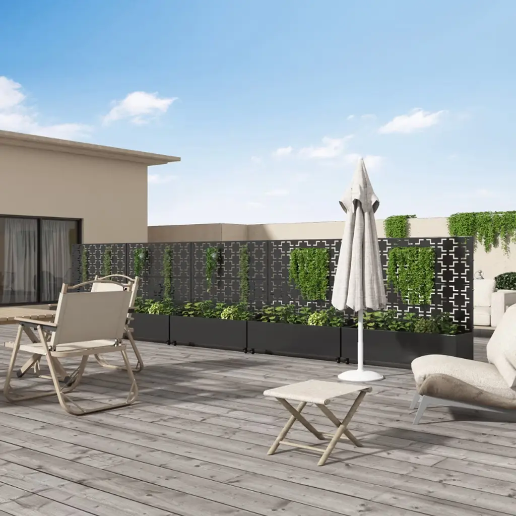Introducing the Metal Planter Box with Trellis Raised Garden Bed with Arbor Privacy Screen with Wheels - the ultimate solution for creating a beautiful and functional outdoor or indoor space. This versatile garden bed combines the elegance of a trellis with the practicality of a raised bed. It also can be a perfect choice as a privacy screen when creating more beauty for your home.