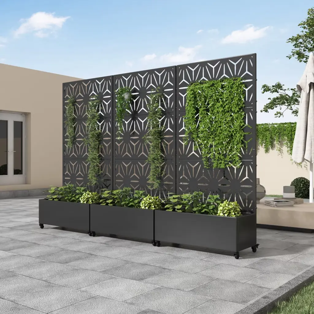 Introducing the Metal Planter Box with Trellis Raised Garden Bed with Arbor Privacy Screen with Wheels - the ultimate solution for creating a beautiful and functional outdoor or indoor space. This versatile garden bed combines the elegance of a trellis with the practicality of a raised bed. It also can be a perfect choice as a privacy screen when creating more beauty for your home.