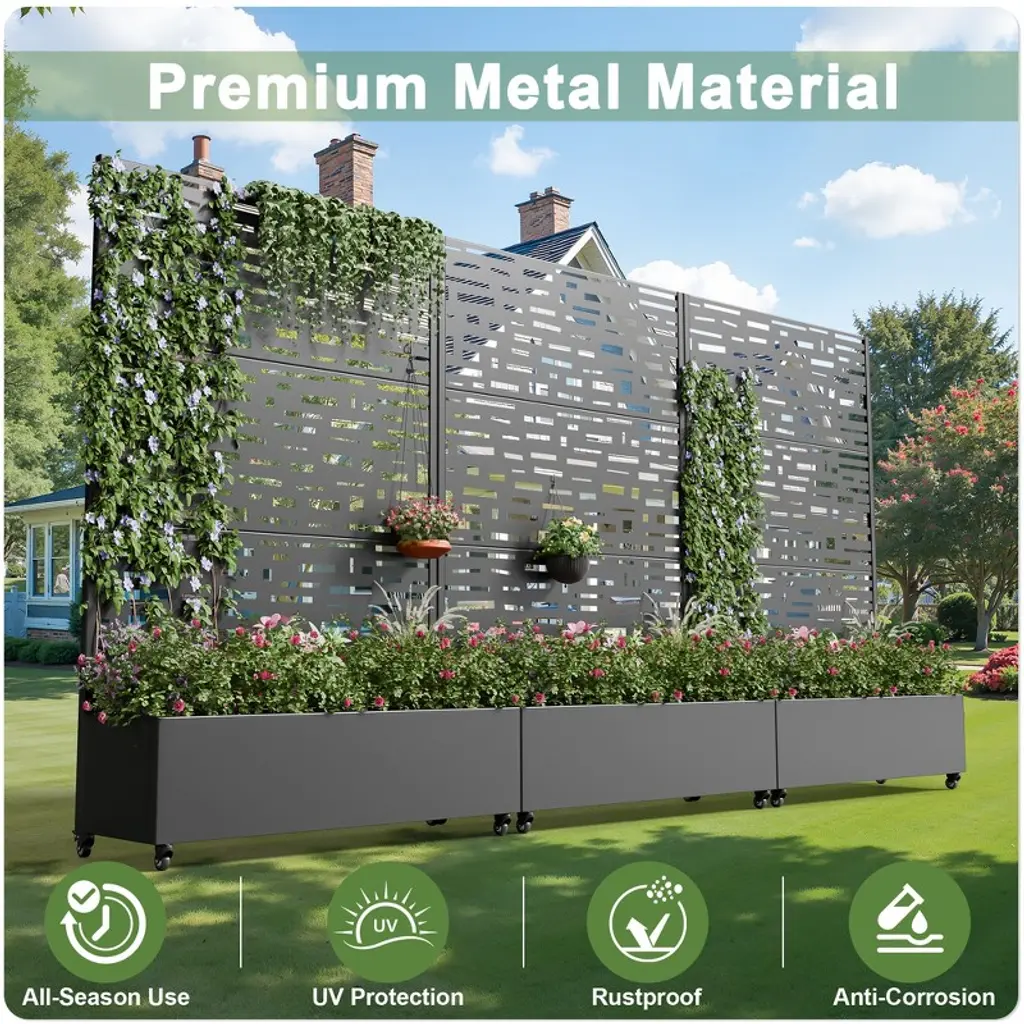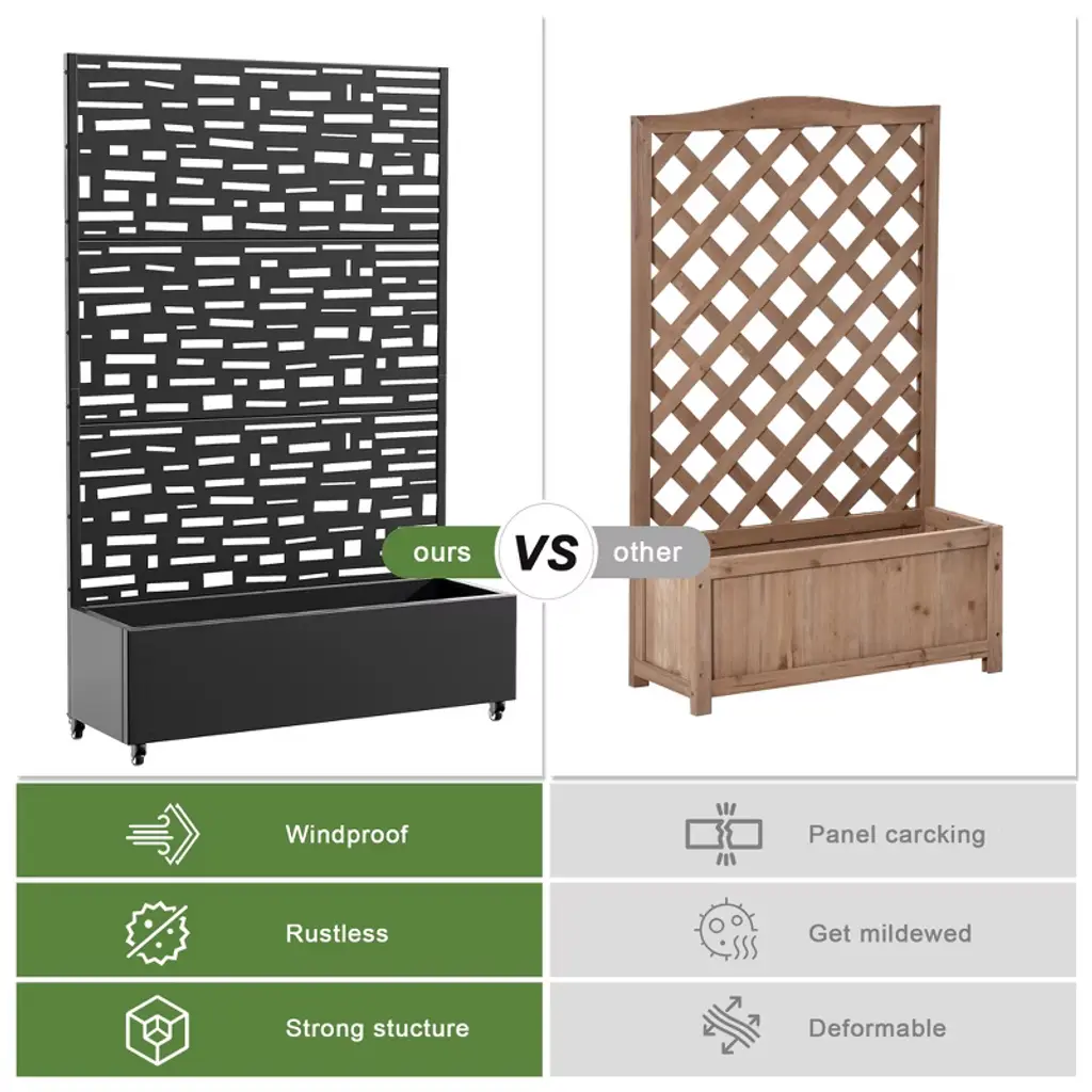 Introducing the Metal Planter Box with Trellis Raised Garden Bed with Arbor Privacy Screen with Wheels - the ultimate solution for creating a beautiful and functional outdoor or indoor space. This versatile garden bed combines the elegance of a trellis with the practicality of a raised bed. It also can be a perfect choice as a privacy screen when creating more beauty for your home.