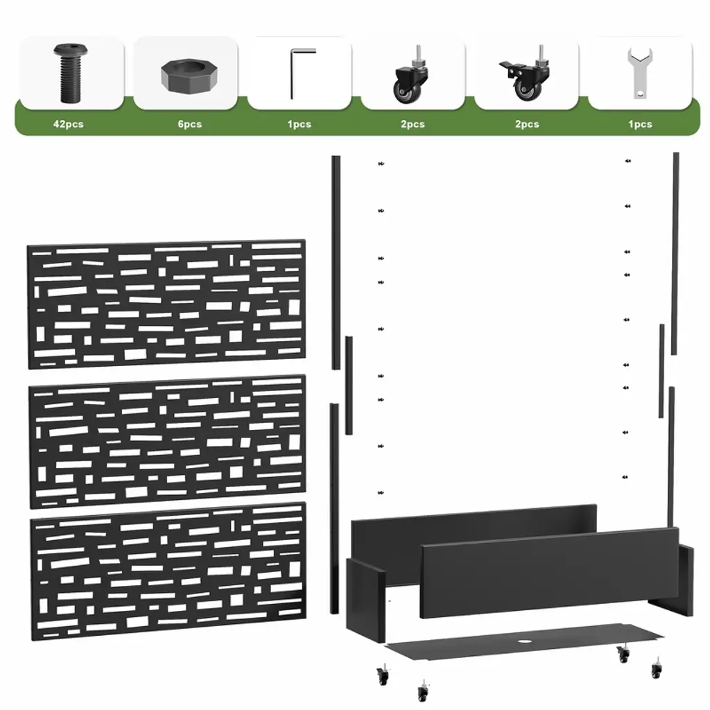 Wooakway 47"×72" Black Metal Planter Box With Trellis Raised Garden Bed With Arbor Privacy Screen With Wheels
