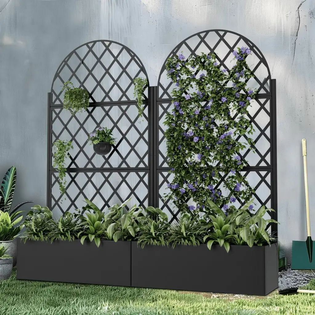 Introducing the Metal Planter Box with Trellis Raised Garden Bed with Arbor Privacy Screen with Wheels - the ultimate solution for creating a beautiful and functional outdoor or indoor space. This versatile garden bed combines the elegance of a trellis with the practicality of a raised bed. It also can be a perfect choice as a privacy screen when creating more beauty for your home.