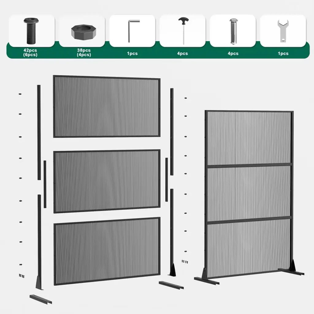 Elevate your outdoor living space with this elegant woven room divider, a perfect patio decorative screen that blends privacy with modern style. The three-panel design creates an intimate retreat for your garden or backyard while serving as a striking statement piece. Crafted from durable woven metal, this versatile screen offers both functionality and contemporary aesthetics, transforming open areas into secluded havens without compromising on visual appeal. Its timeless design provides the ideal balance of form and function for enhancing any outdoor environment.