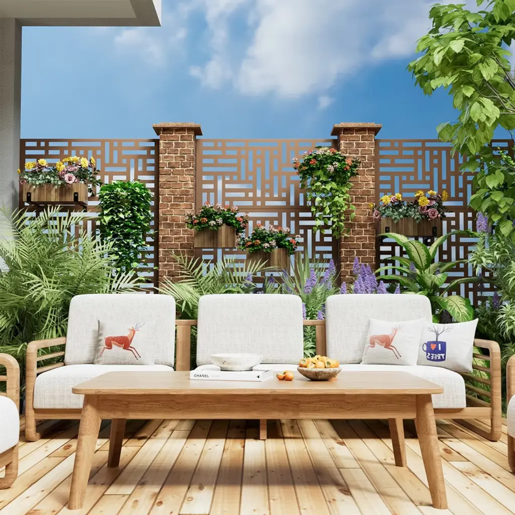 Elevate your outdoor space with our stunning 72"H¡Á47"W¡Á16"D Outdoor Metal Privacy Screen Garden Trellis Lattice Panel Fence Panel. This versatile and stylish addition is perfect for creating a private oasis in your garden or backyard. Crafted from durable metal, it combines functionality with aesthetic appeal, offering both privacy and a decorative touch. Whether you're looking to shield your space from neighbors, add a vertical garden element, or enhance your landscape design, this is the ideal solution. Transform your outdoor area into a serene retreat with this elegant and practical choice.