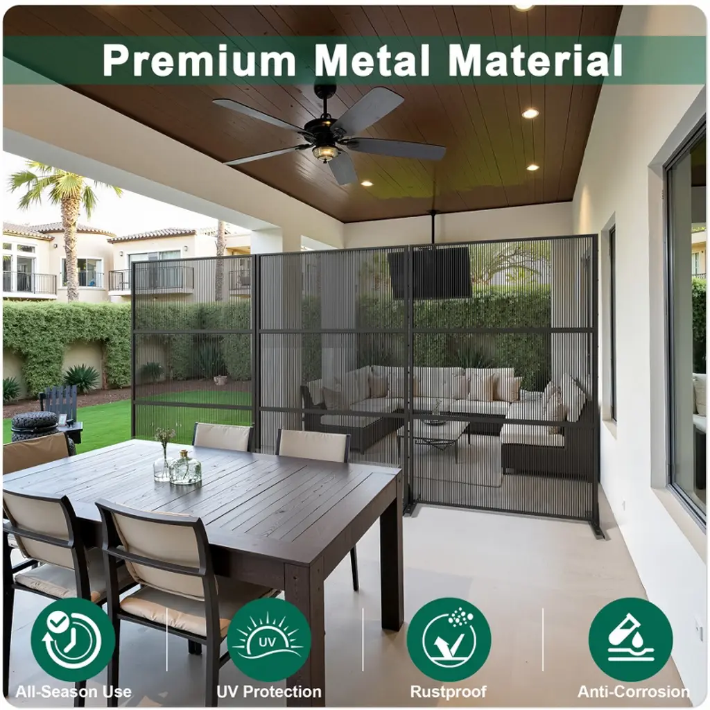 Elevate your outdoor living space with this elegant woven room divider, a perfect patio decorative screen that blends privacy with modern style. The three-panel design creates an intimate retreat for your garden or backyard while serving as a striking statement piece. Crafted from durable woven metal, this versatile screen offers both functionality and contemporary aesthetics, transforming open areas into secluded havens without compromising on visual appeal. Its timeless design provides the ideal balance of form and function for enhancing any outdoor environment.
