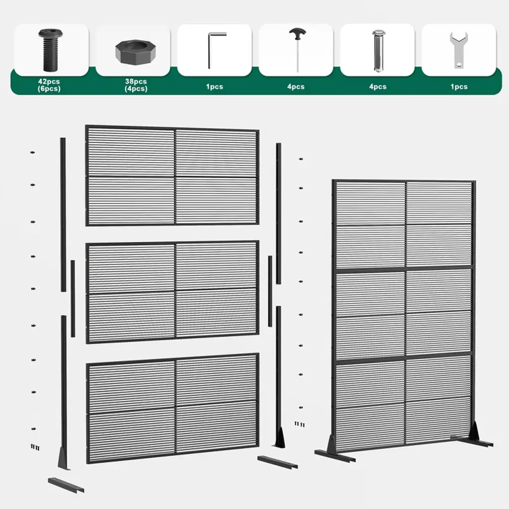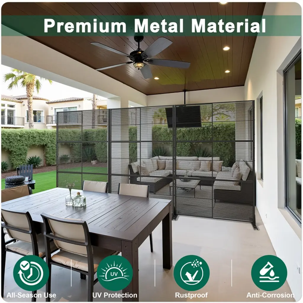 Elevate your outdoor living space with this elegant woven room divider, a perfect patio decorative screen that blends privacy with modern style. The three-panel design creates an intimate retreat for your garden or backyard while serving as a striking statement piece. Crafted from durable woven metal, this versatile screen offers both functionality and contemporary aesthetics, transforming open areas into secluded havens without compromising on visual appeal. Its timeless design provides the ideal balance of form and function for enhancing any outdoor environment.