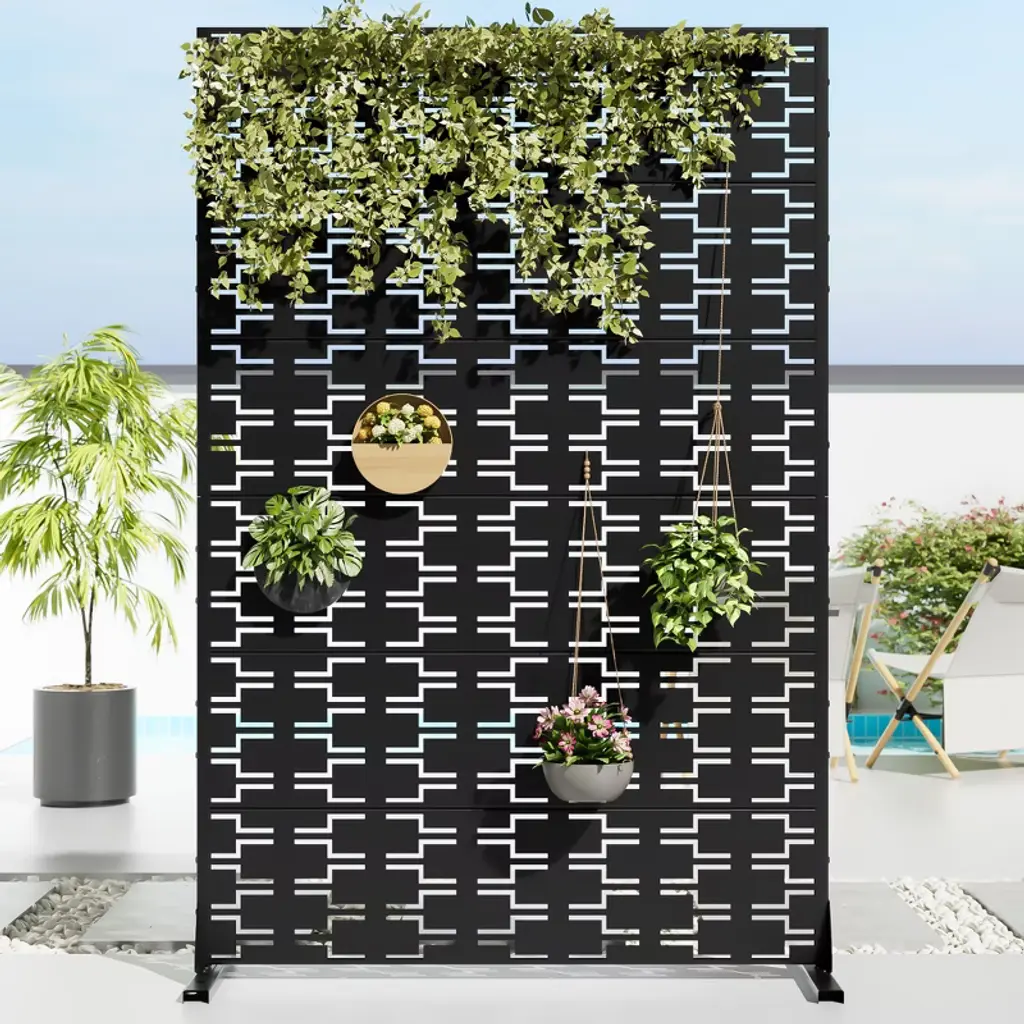 Elevate your outdoor space with our stunning 72"H 47"W 16"D Metal Partitions and Room Dividers/Privacy Screen /Garden Trellis /Lattice Panel Fence Panel. This versatile and stylish addition is perfect for creating a private oasis in your garden or backyard. Crafted from durable metal, it combines functionality with aesthetic appeal, offering both privacy and a decorative touch. Whether you're looking to shield your space from neighbors, add a vertical garden element, or enhance your landscape design, this is the ideal solution. Transform your outdoor area into a serene retreat with this elegant and practical choice.