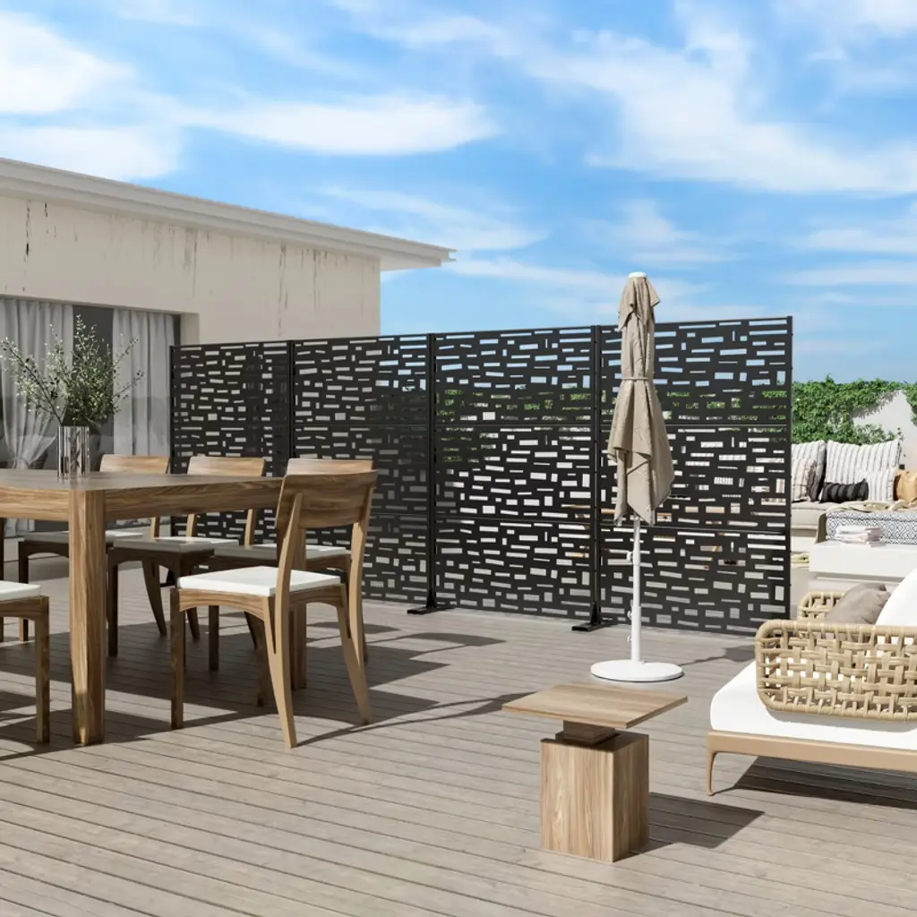 Elevate your outdoor space with our stunning 72"H 47"W 16"D Metal Partitions and Room Dividers/Privacy Screen /Garden Trellis /Lattice Panel Fence Panel. This versatile and stylish addition is perfect for creating a private oasis in your garden or backyard. Crafted from durable metal, it combines functionality with aesthetic appeal, offering both privacy and a decorative touch. Whether you're looking to shield your space from neighbors, add a vertical garden element, or enhance your landscape design, this is the ideal solution. Transform your outdoor area into a serene retreat with this elegant and practical choice.