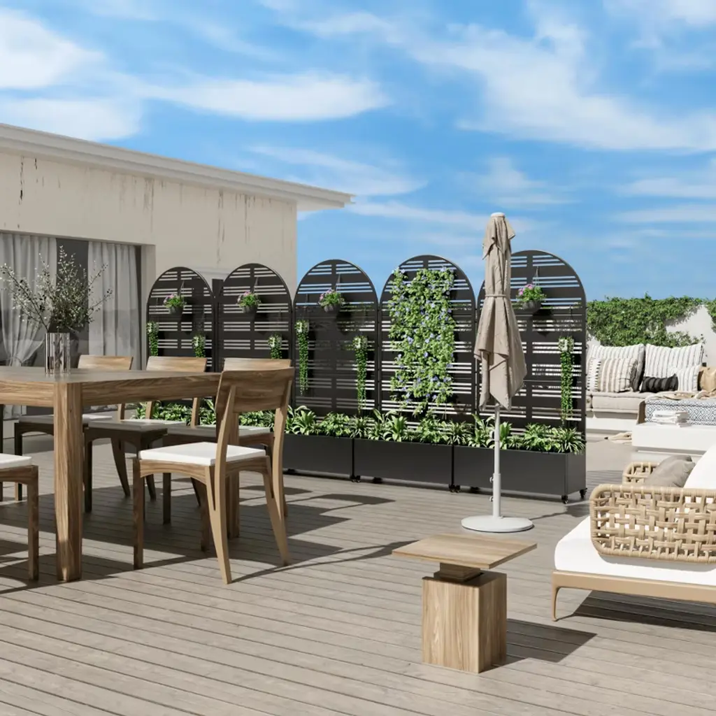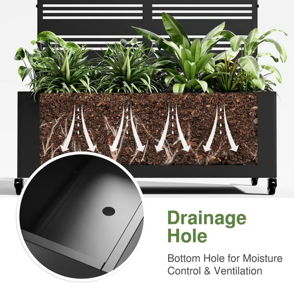Introducing the Metal Planter Box with Trellis Raised Garden Bed with Arbor Privacy Screen with Wheels - the ultimate solution for creating a beautiful and functional outdoor or indoor space. This versatile garden bed combines the elegance of a trellis with the practicality of a raised bed. It also can be a perfect choice as a privacy screen when creating more beauty for your home.
