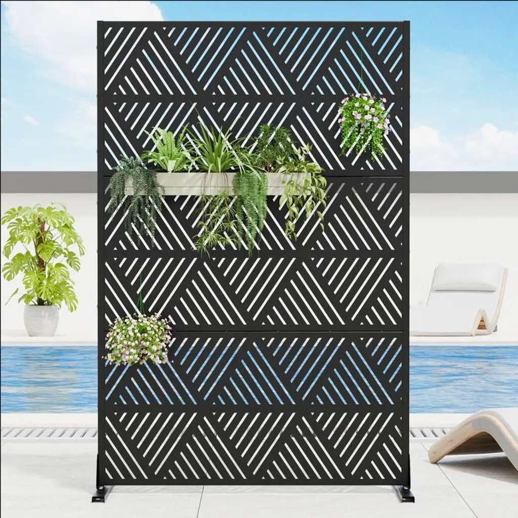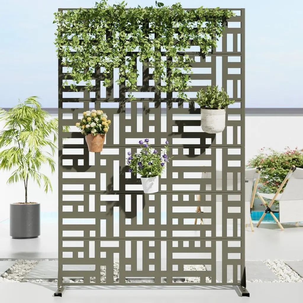 This modern outdoor planters features a geometric cut-out design that combines visual elegance with functional ventilation for healthy plant growth. Designed with practicality in mind, they are equipped with sturdy wheels at the base for effortless mobility. Ideal for flexible placement on balconies, terraces, or patios, they seamlessly blend form and function in any outdoor setting.