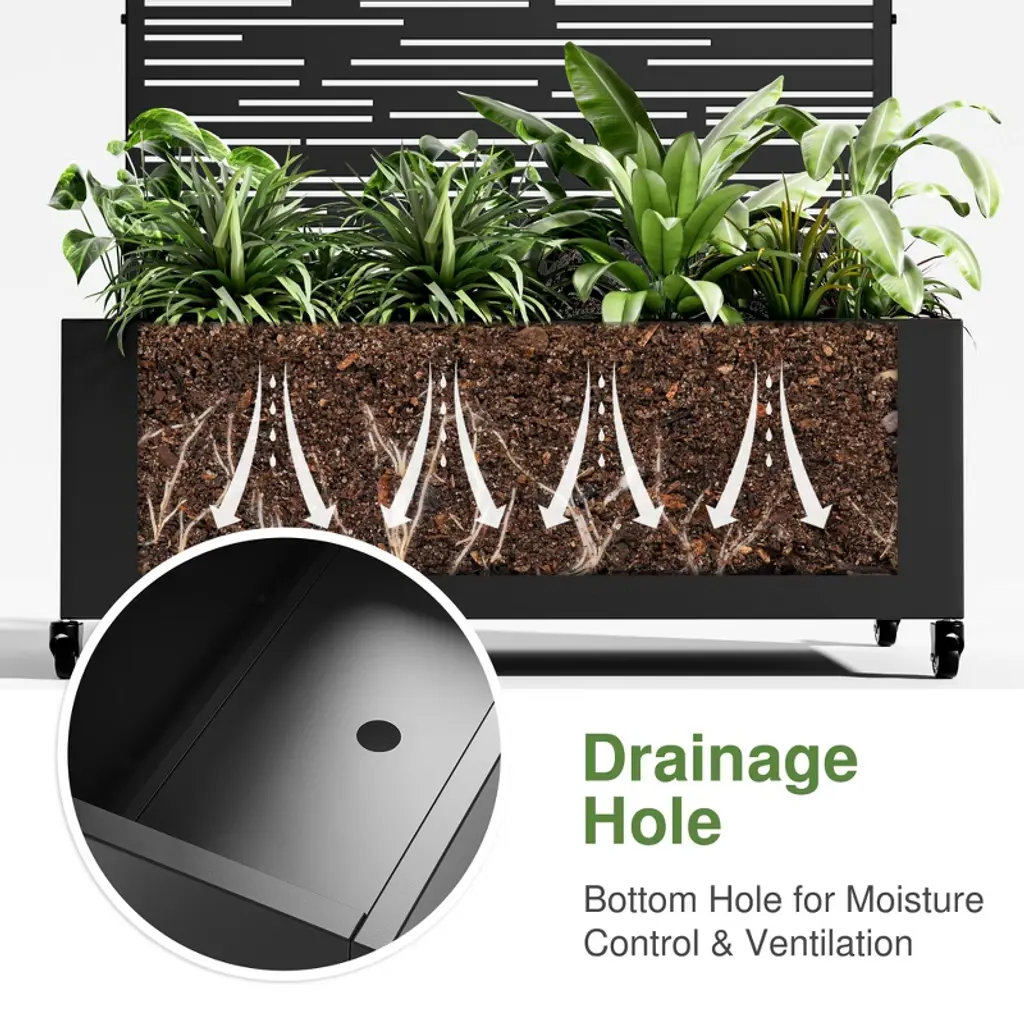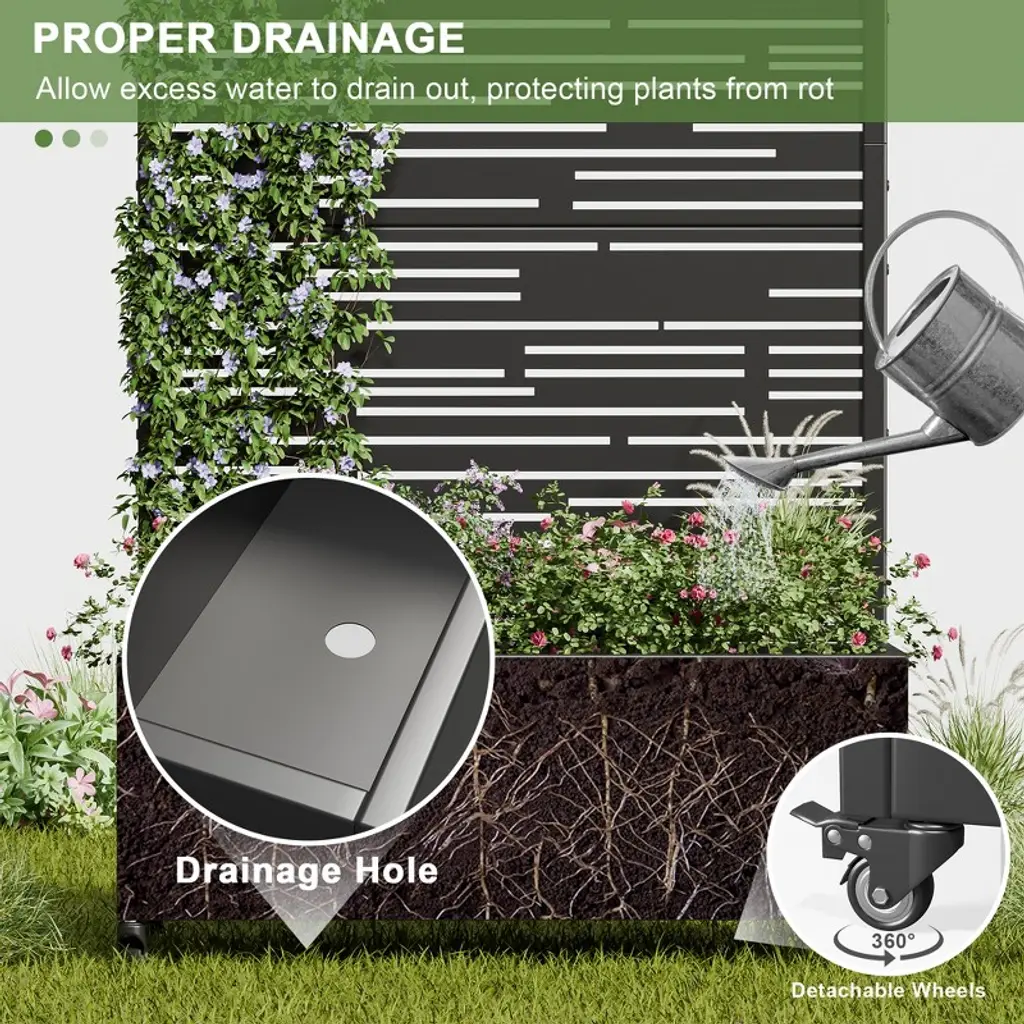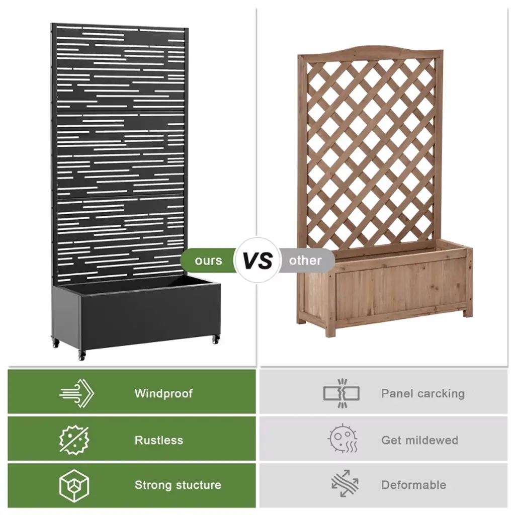 Wooakway 72"h Black Rectangle Metal Planter Box With Trellis Raised Garden Bed With Arbor Privacy Screen With Wheels