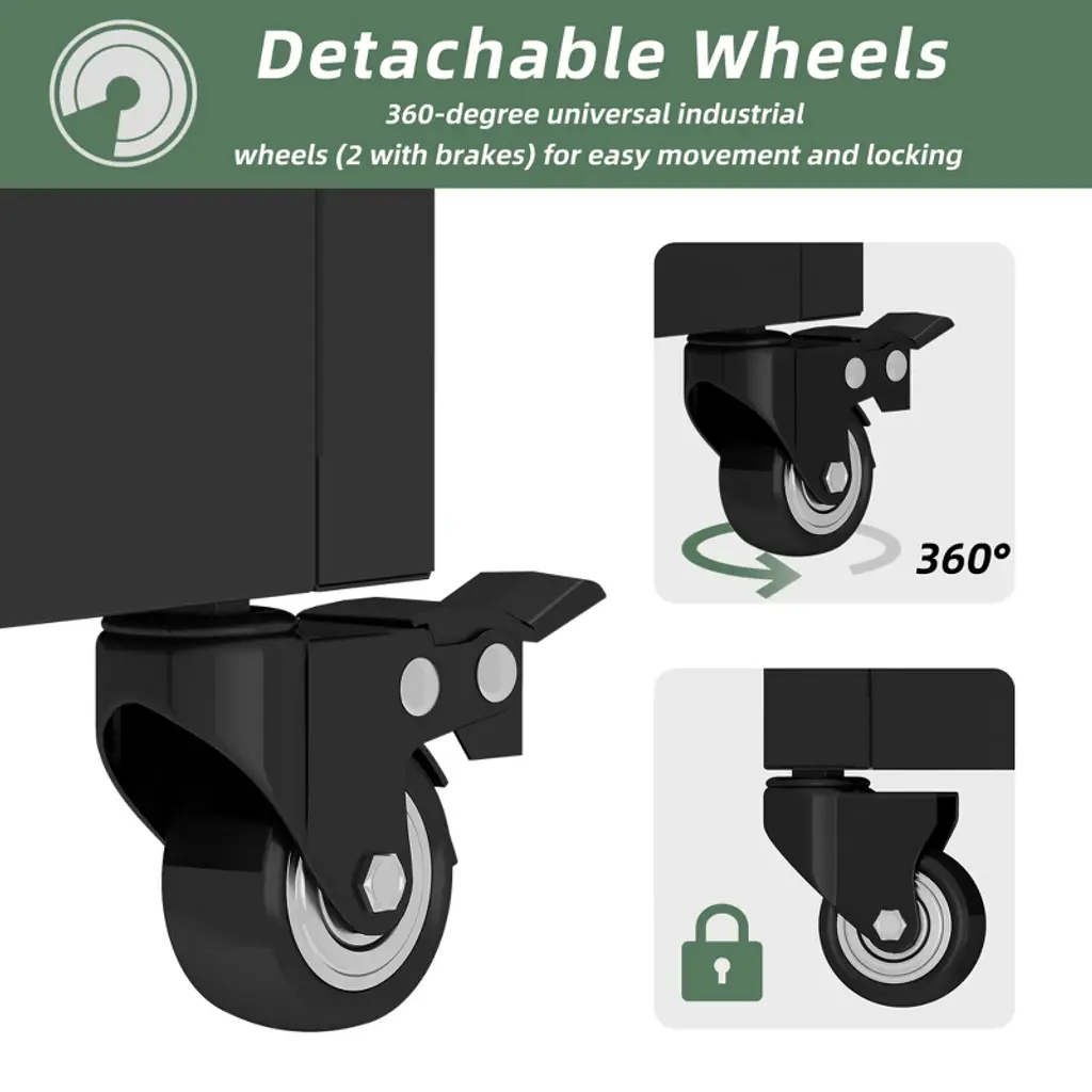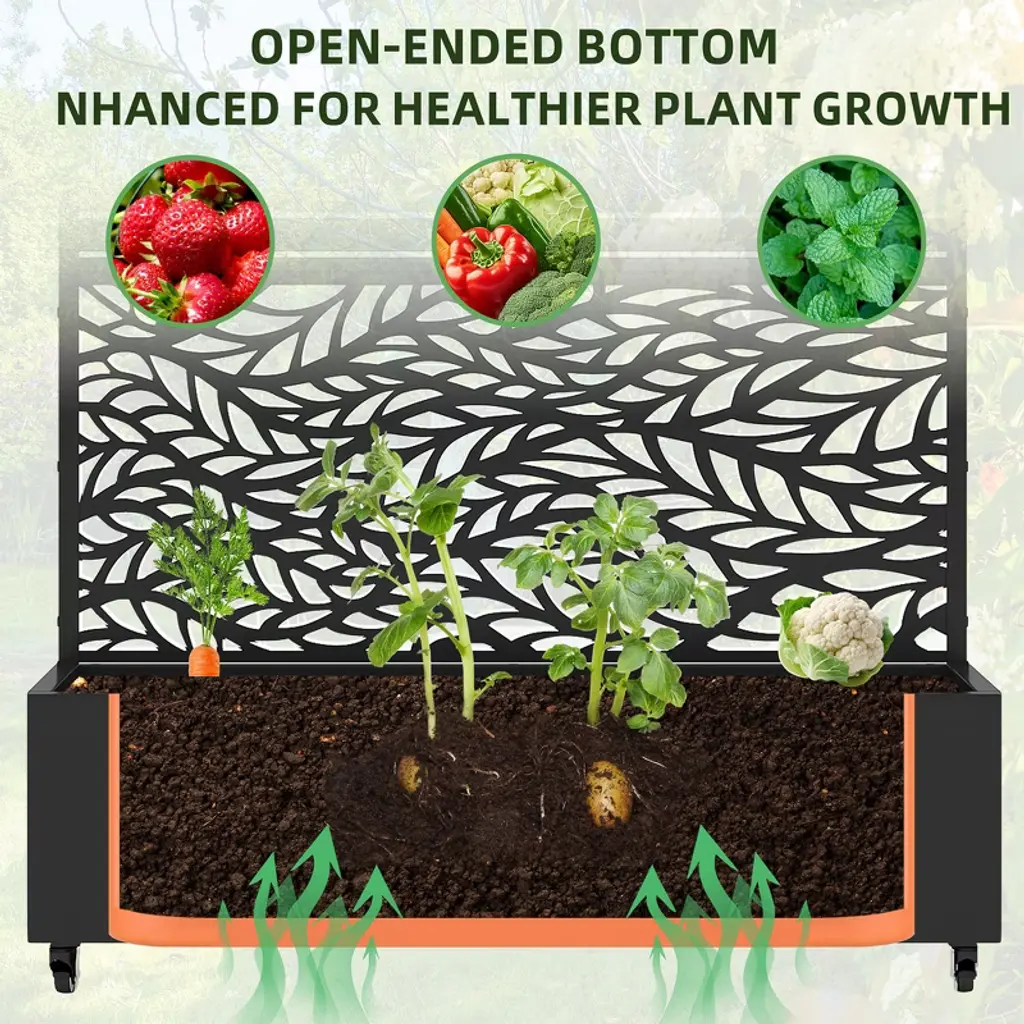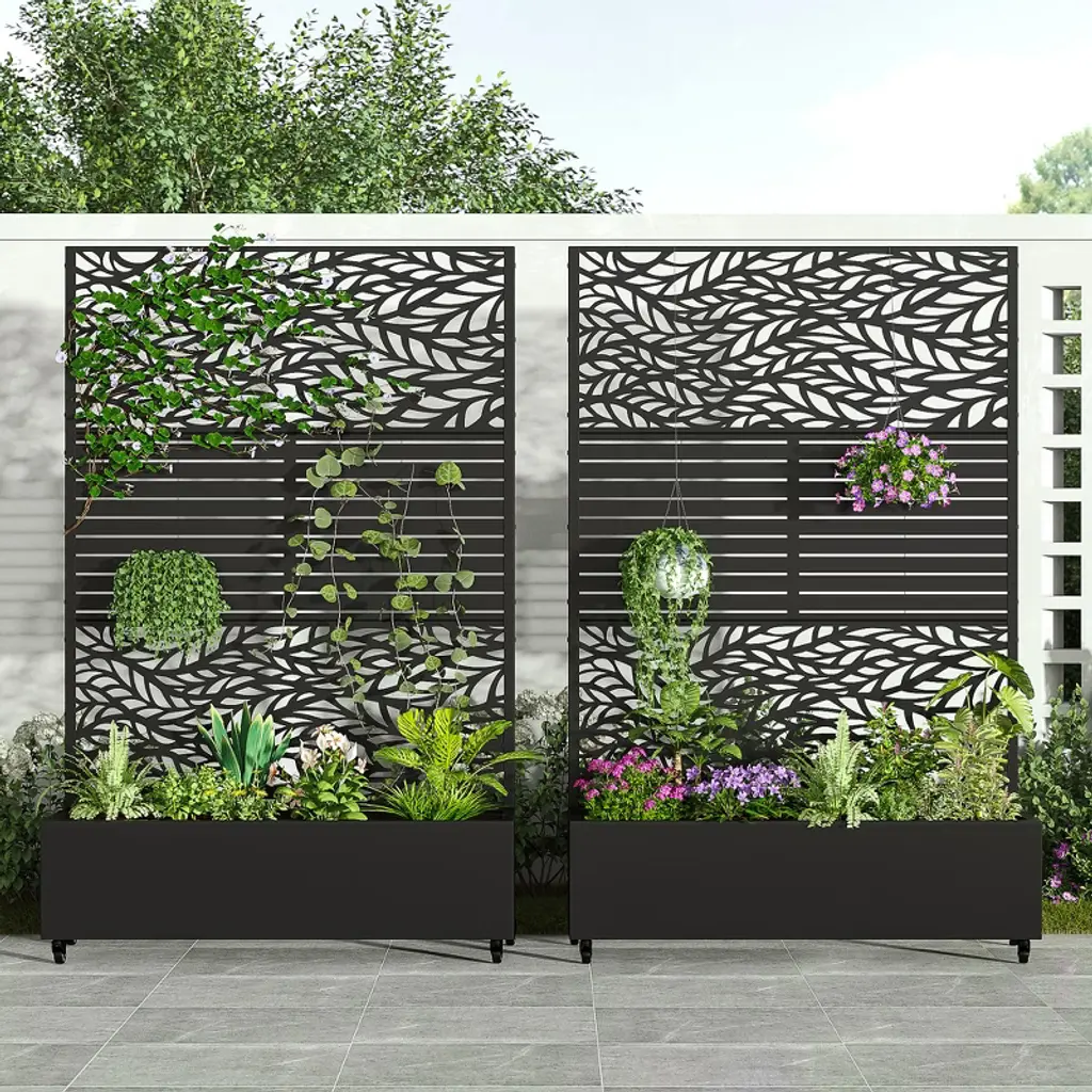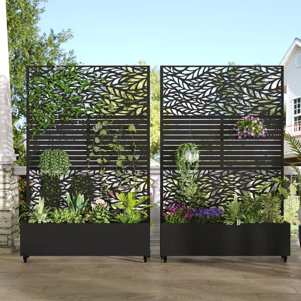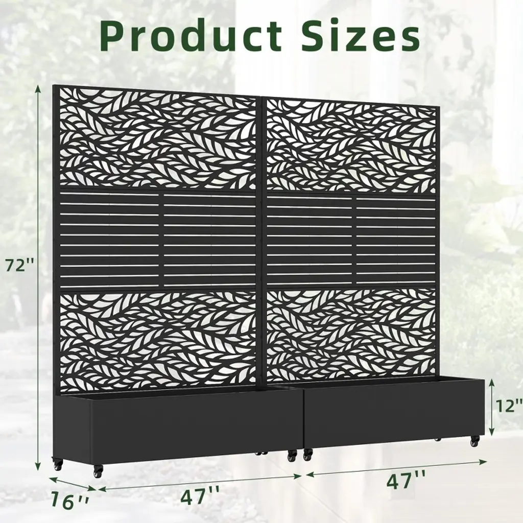 Wooakway 72"h Two-tone Patio Planter Box With Trellis Metal Raised Garden Bed Black Decorative Privacy Screen With Wheels