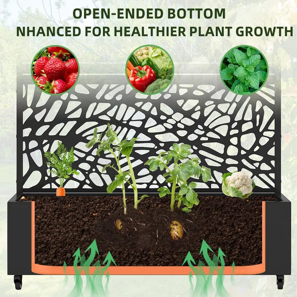 Wooakway 72"h*141"w Two-tone Patio Planter Box With Trellis Metal Raised Garden Bed Black Decorative Privacy Screen With Wheels