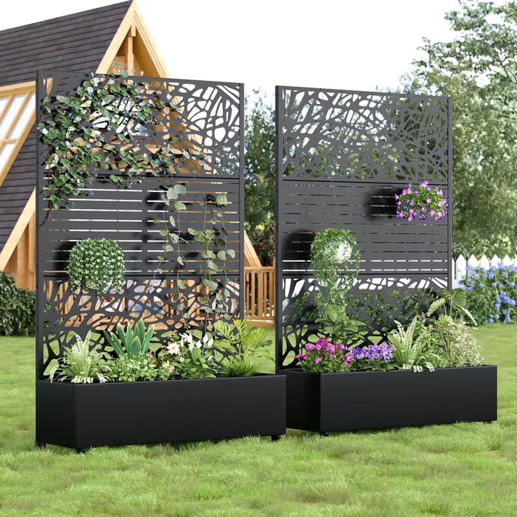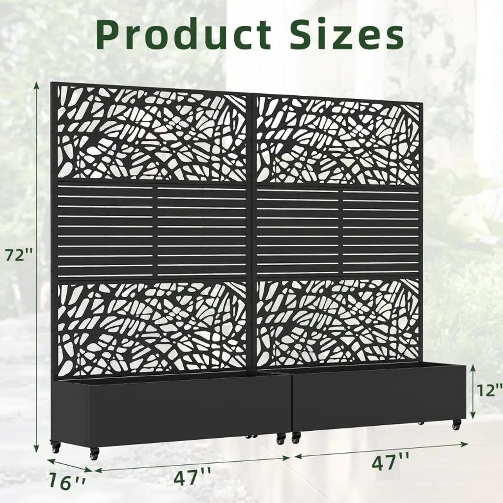Introducing the 72"H Two-tone Patio Planter Box with Trellis Metal Raised Garden Bed, a perfect blend of elegance and functionality. This decorative privacy screen is not just a planter; it's a statement piece for your outdoor space.