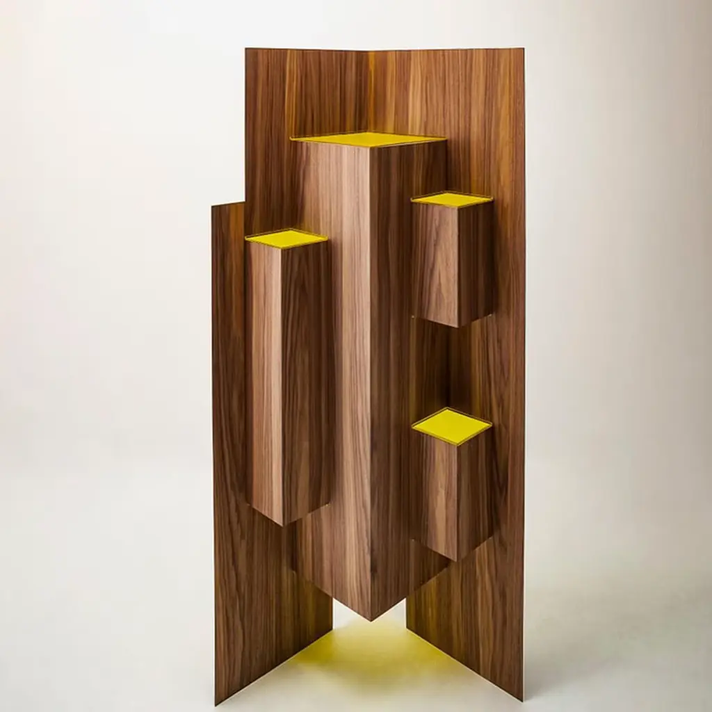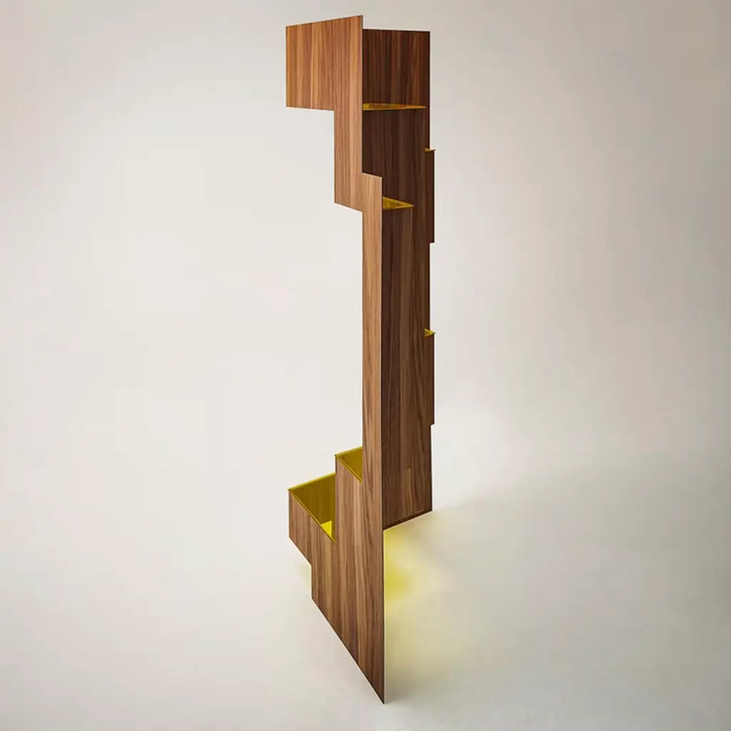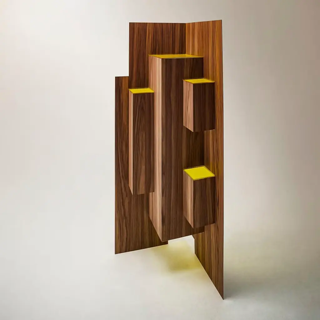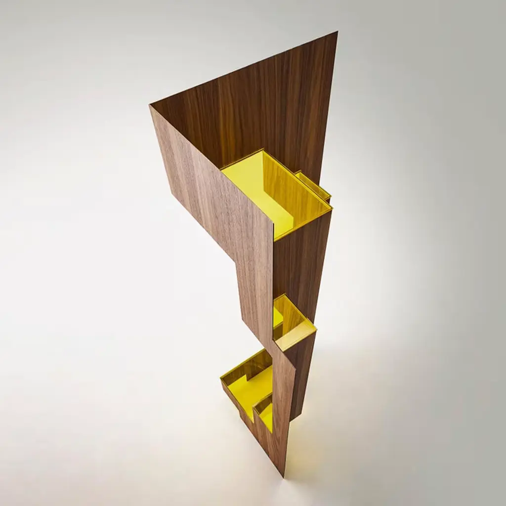 Aptly named after the ancient Japanese art of cutting paper, this eye-catching screen exemplifies Sebastiano Bottos unique architectural and sculptural style. The 2mm-thick wood structure is masterfully folded using the Kirigami technique to obtain the three-dimensional effect, enhanced by the vibrant yellow acrylic fabric double-sided composite panels strategically placed to create an interplay of perspectives. A captivating room divider in a large loft space, this is a true work of art by itself. Fully customizable in size and finish on request, ask the Concierge for information.