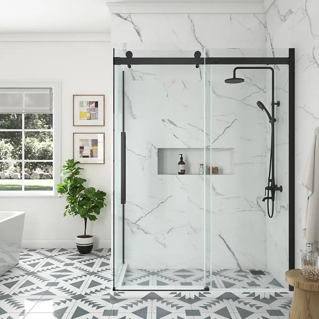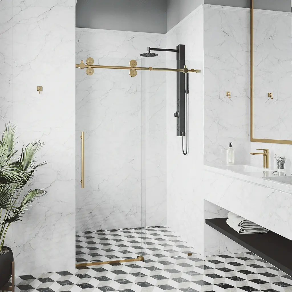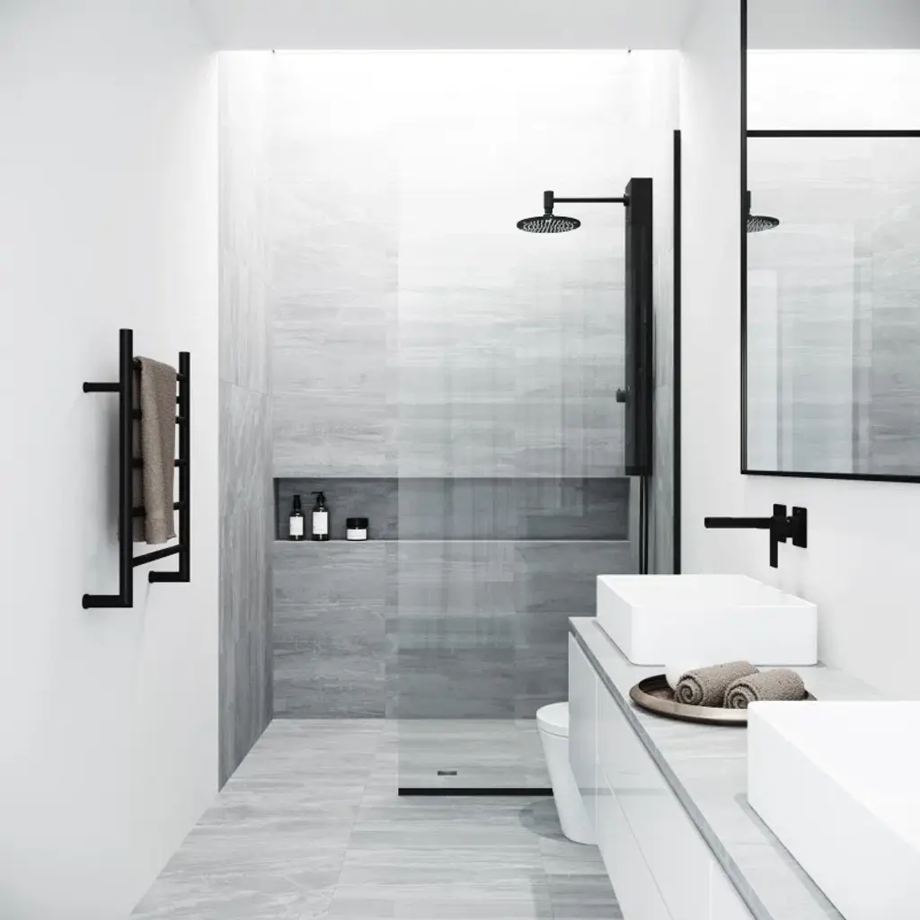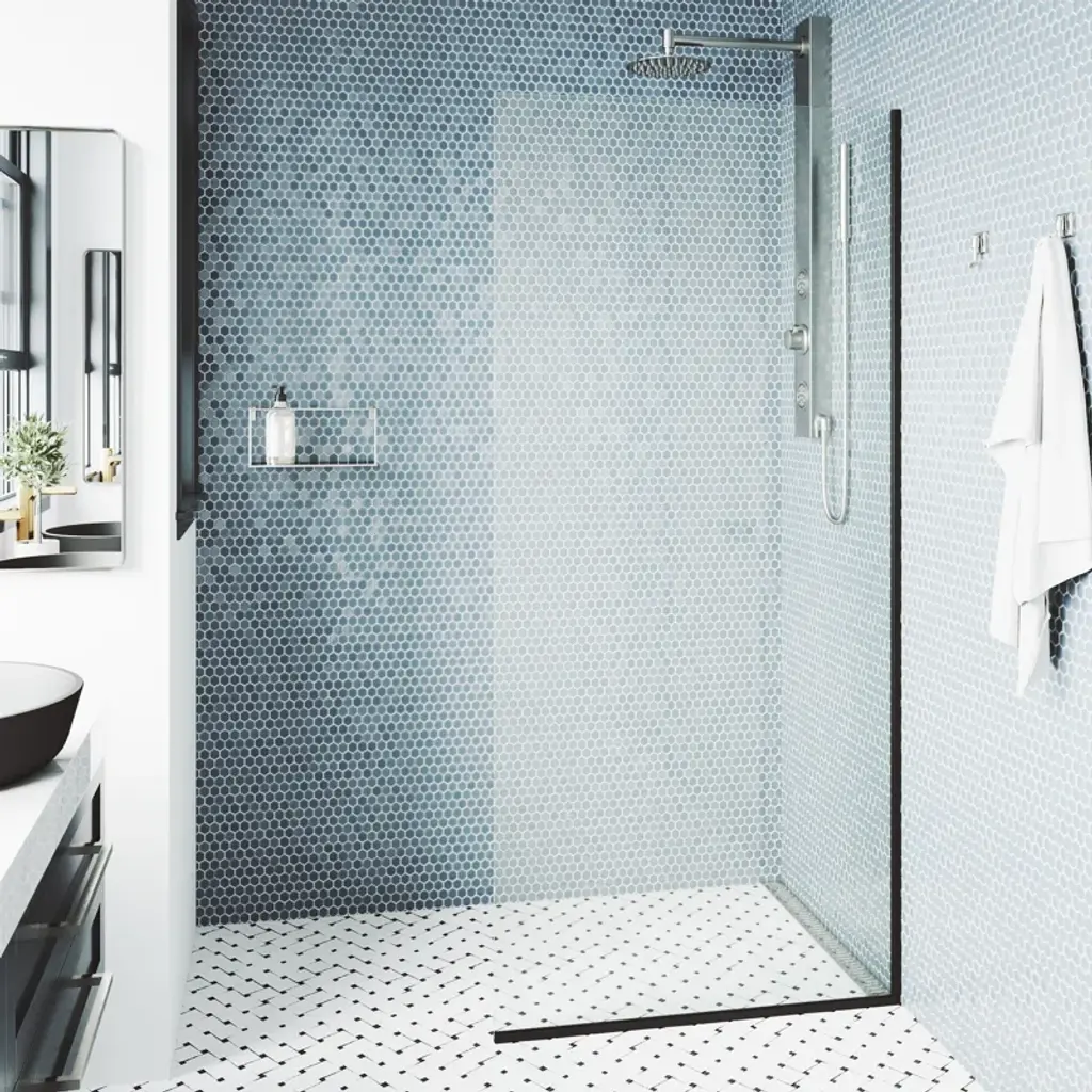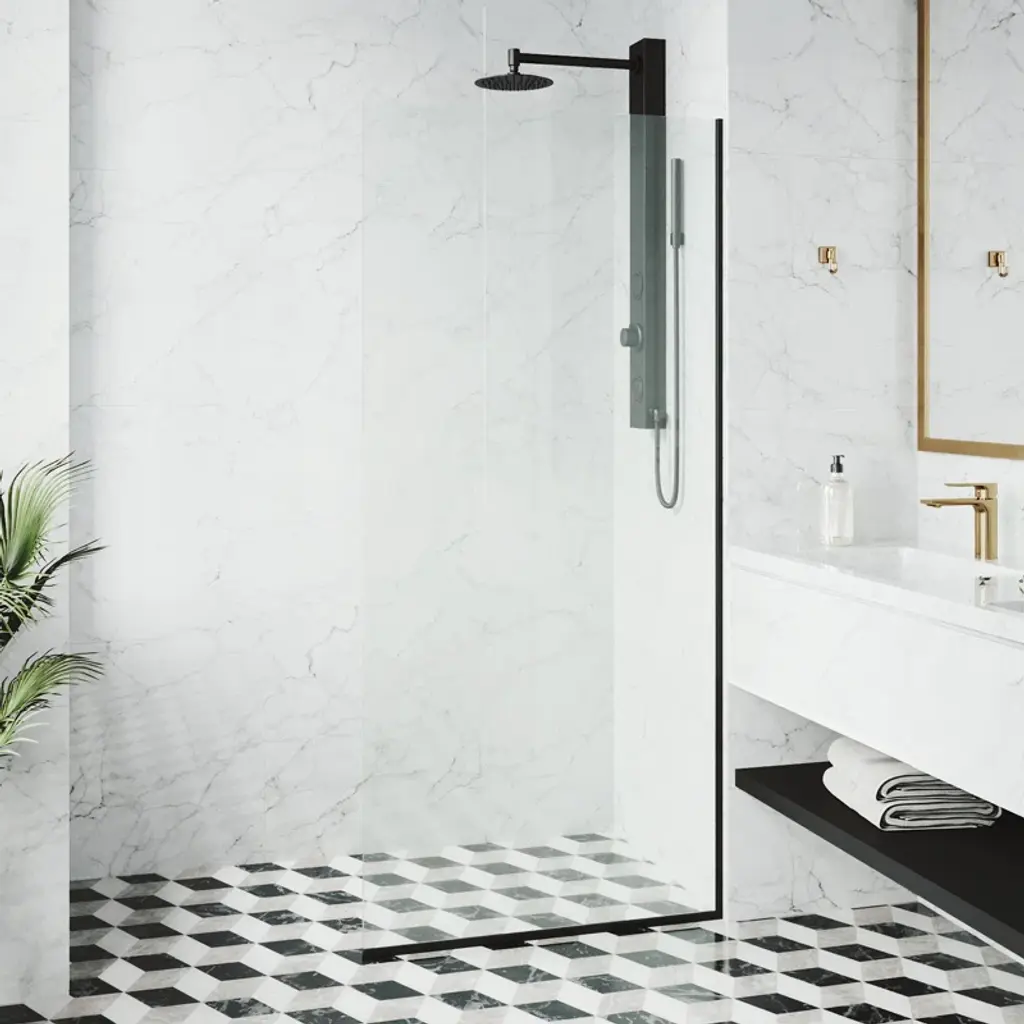 Elevate your bathroom's style and functionality with the VIGO Zenith frameless fixed shower screen. Designed for a sleek, doorless entry, this modern shower screen creates a spacious and inviting atmosphere. Choose from a variety of exquisite glass options including clear glass, sophisticated black tint, and elegant fluted glass, each enhancing the sense of space and light in unique ways. The minimalist design provides a chic, unobstructed look, perfect for contemporary settings. Available in an array of stunning finishes including Matte Black, Matte Gold, Chrome, and Stainless Steel, the Zenith shower screen effortlessly complements any style. Choose the VIGO Zenith frameless fixed shower screen for a blend of elegance and practicality, transforming your bathroom into a luxurious, spa-like haven.