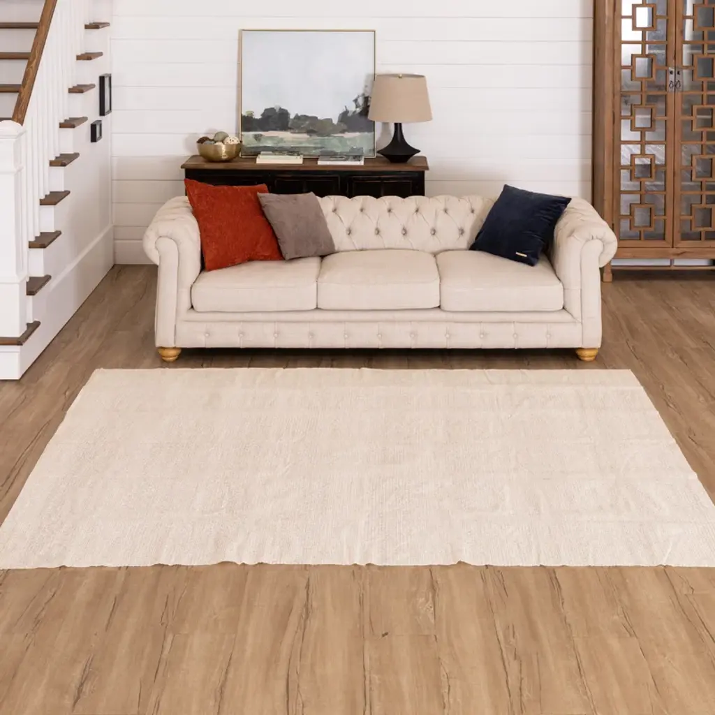 This rug pad is crafted of cellulose-coated polyester complete with a durable acrylic coating. Plus, it can be easily trimmed to fit any rug size.