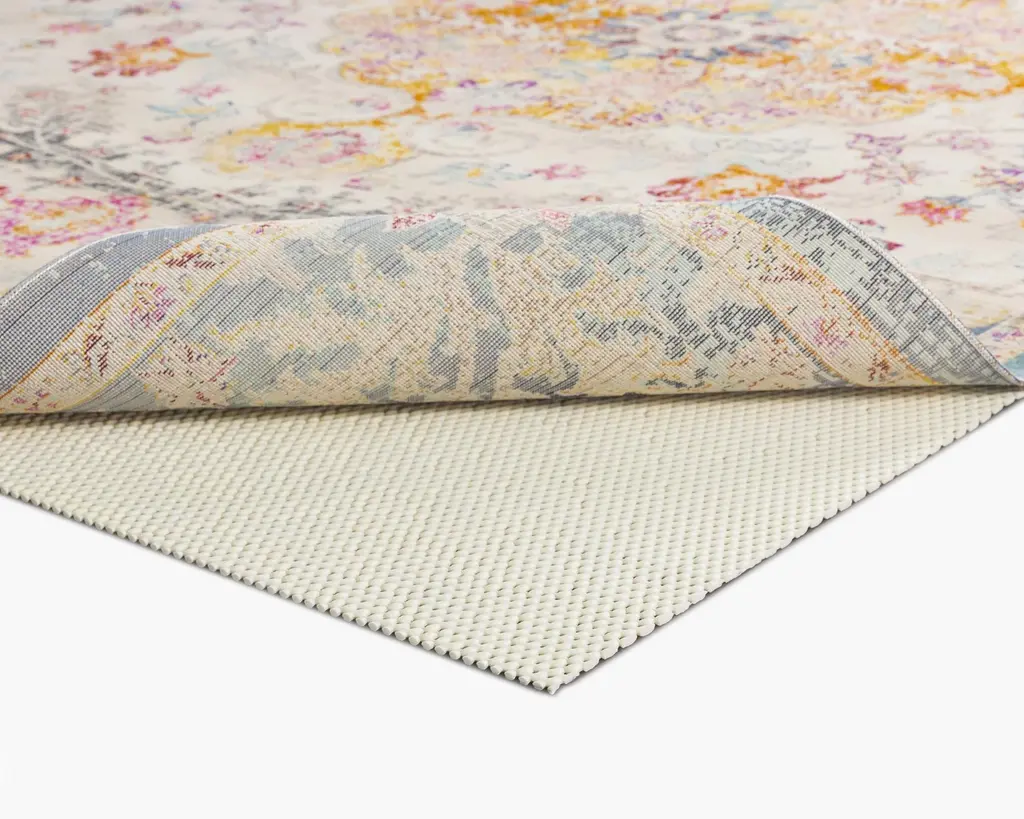 The Luxury Grip rug pad is made of 100% PVC. It features a thick, luxurious open weave construction that allows for proper air flow on hard surfaces. Good cushion, support and structure. Thickness: 0.16" Made from 100% PVC