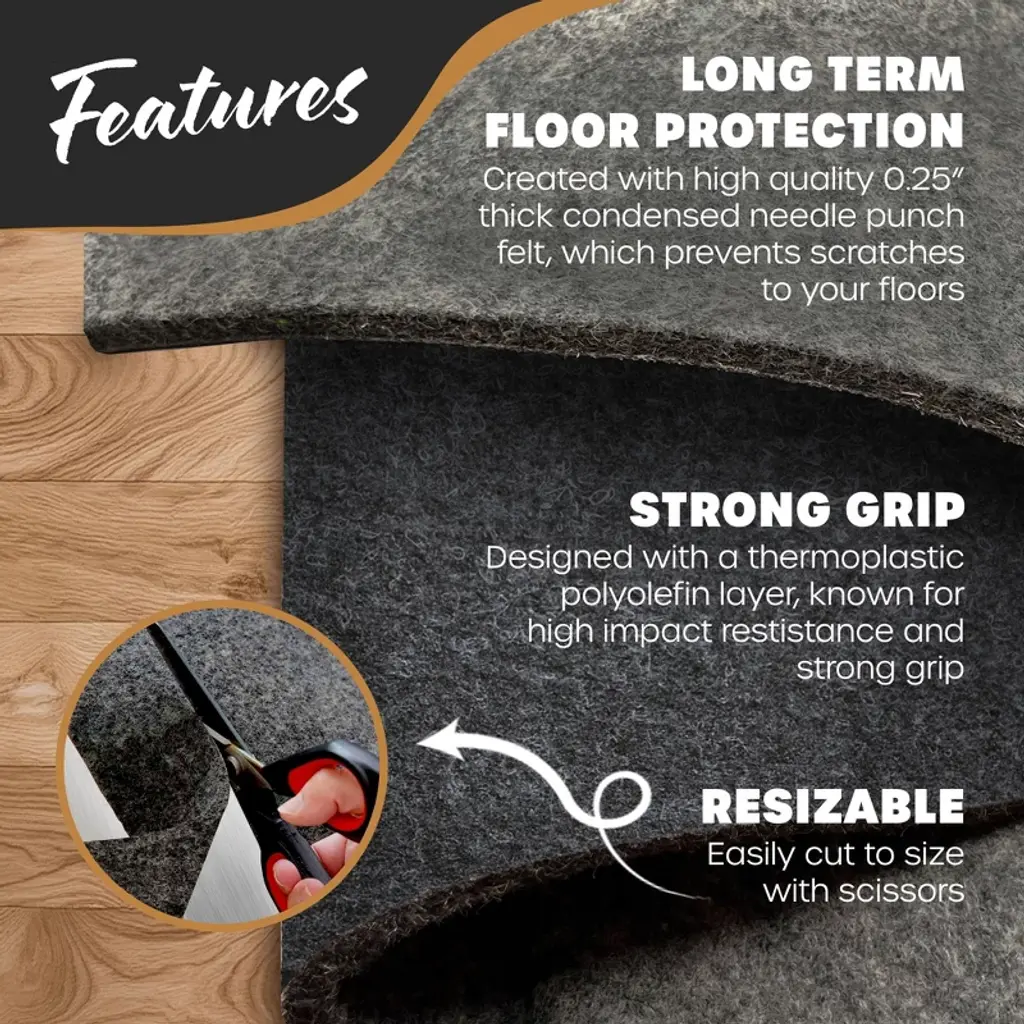 The Nevlers Non-Slip TPO and Felt Rug Padding offers the ideal under rug padding—not too thick and not too thin. Made from 100% recycled gray felt for padding and TPO rubber for grip, this dual-sided rug mat design prevents slippage and keeps your rug right where you want it. These rug grippers help to protect your carpet and floors, as well as provide insulation and dampen noise. They can also be conveniently trimmed to size with a pair of basic household scissors to suit your exact needs. If you’re looking for a durable and adaptable non-slip under rug pad, look no further!