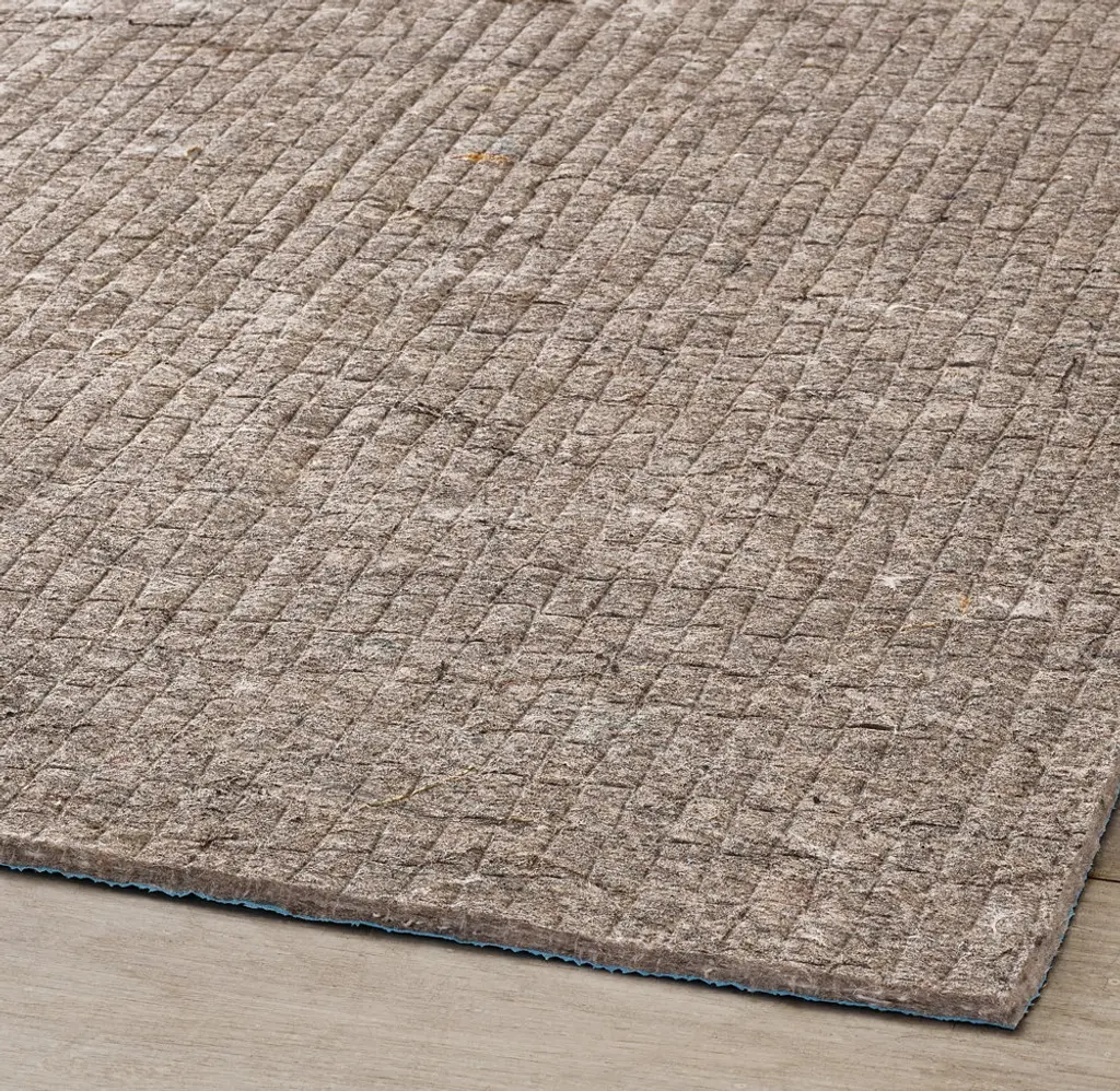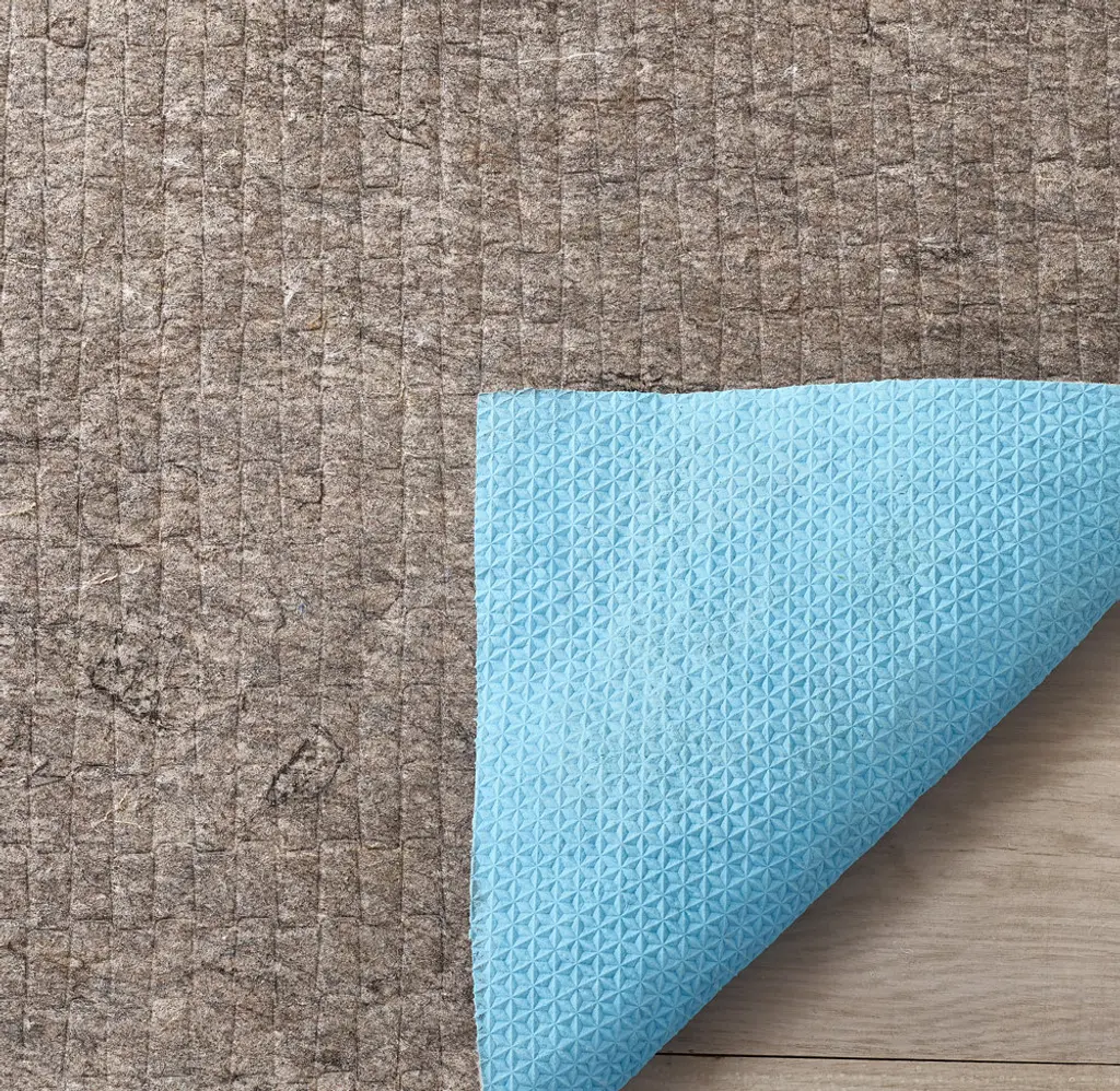 Our Premium Reversible Rug Pad provides a ½" thick, durable foundation for rugs placed on smooth flooring or carpeting. An embossed fiber surface offers firm, non-slip traction on carpeted surfaces that reverses to a non-skid rubber backing for hardwood and tile floors. May be trimmed to fit non-standard sized rugs. Hand washable and suitable for radiant heated floors. Made in the USA. 100% post-industrial recycled synthetic fibers and rubber.